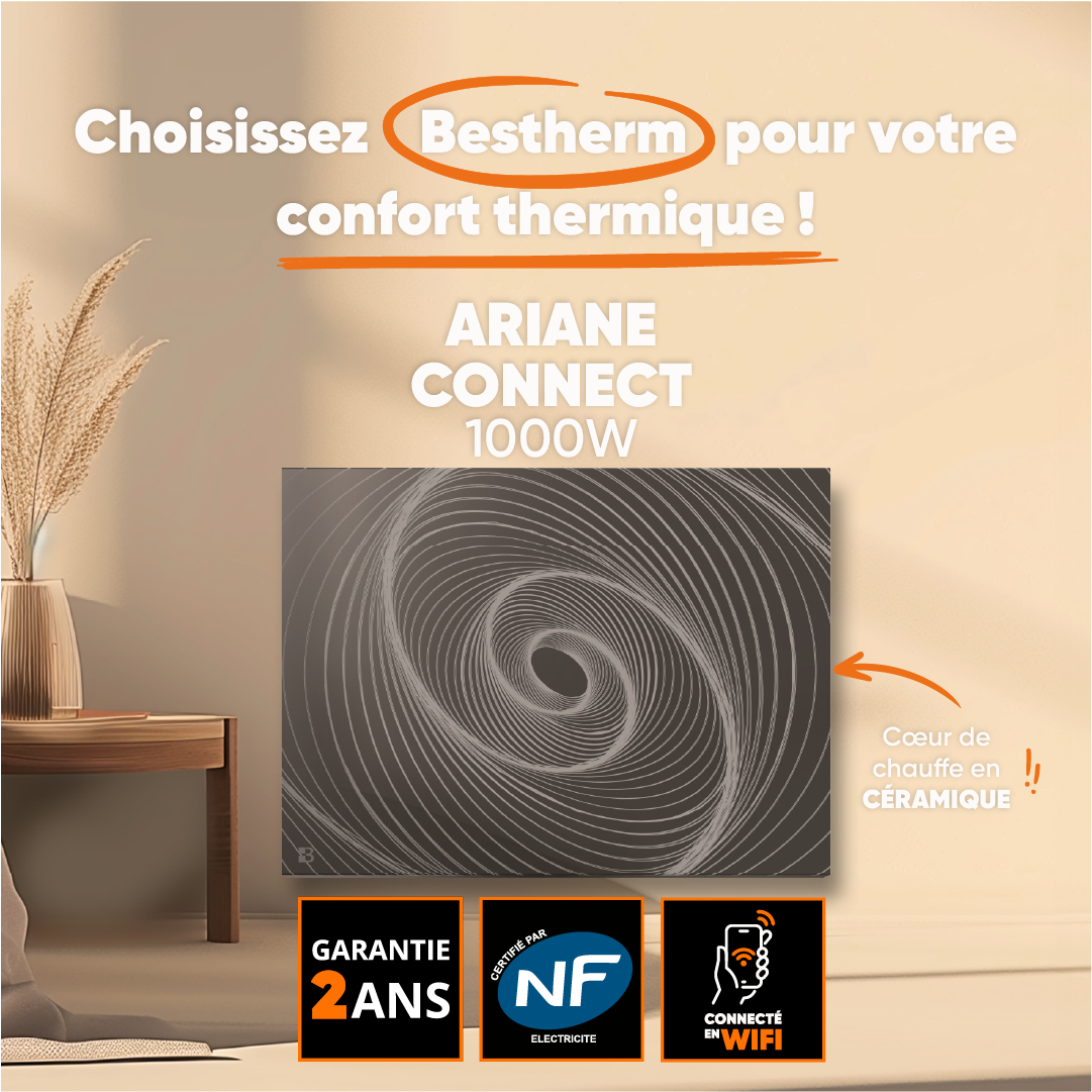 Radiateur électrique fixe connecté WIFI à inertie sèche céramique 1000W Bestherm ARIANE CONNECT Design ho