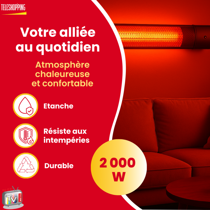 Chaleur instantanée et homogène – Grâce à la technologie infrarouge haute performance, ce chauffage diffuse une chaleur douce et immédiate, parfaite pour une utilisation en extérieur comme chauffage terrasse ou en intérieur comme radiateur salle de bain ou chauffage d'appoint.