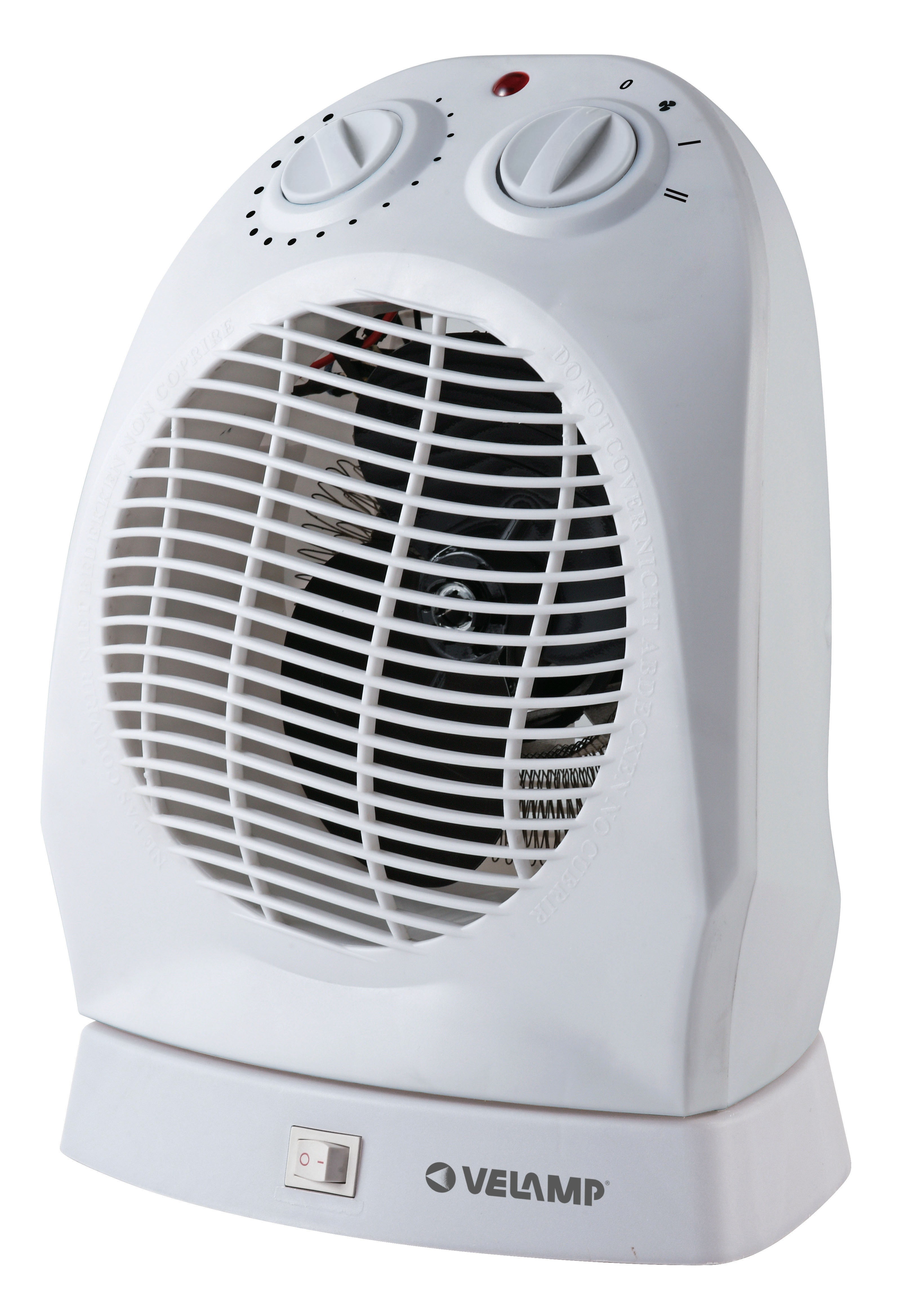 Chauffage compact. 2 niveaux de température réglables manuellement : Eco (100W) et confort (2000 W). Sécurité: doté d'une protection anti-surchauffe et antichute. Arrêt automatique à la température réglée. Idéal pour une pièce de 12 m2. Débit : 180 m3/h. Utilisable même pendant la saison chaude grâce à la fonction ventilateur. Base rotative : contrôlée par un interrupteur spécifique, la base fait tourner le radiateur de manière à distribuer la chaleur dans toute la pièce. L'efficacité est donc bien supérieure à un radiateur « immobile ». Dimensions: 215mm x 180mm x 283mm.