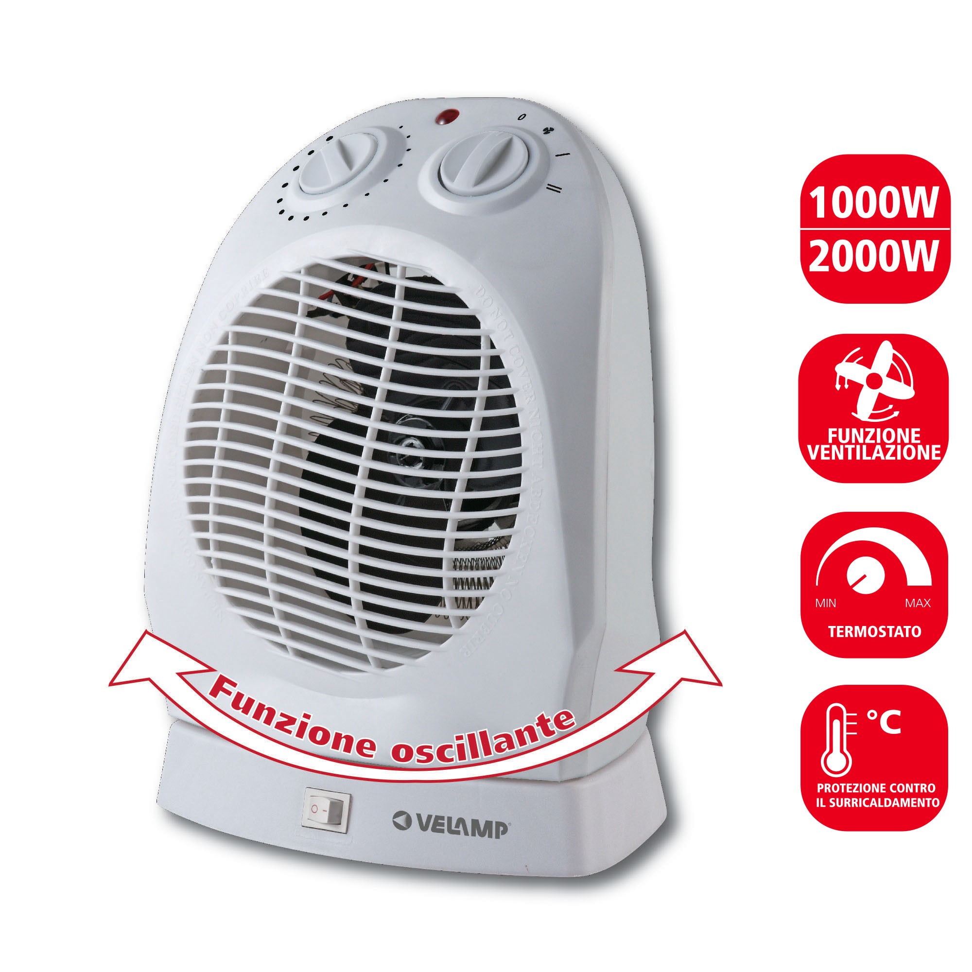 Radiateur soufflant 2kW avec rotation automatique. Blanc