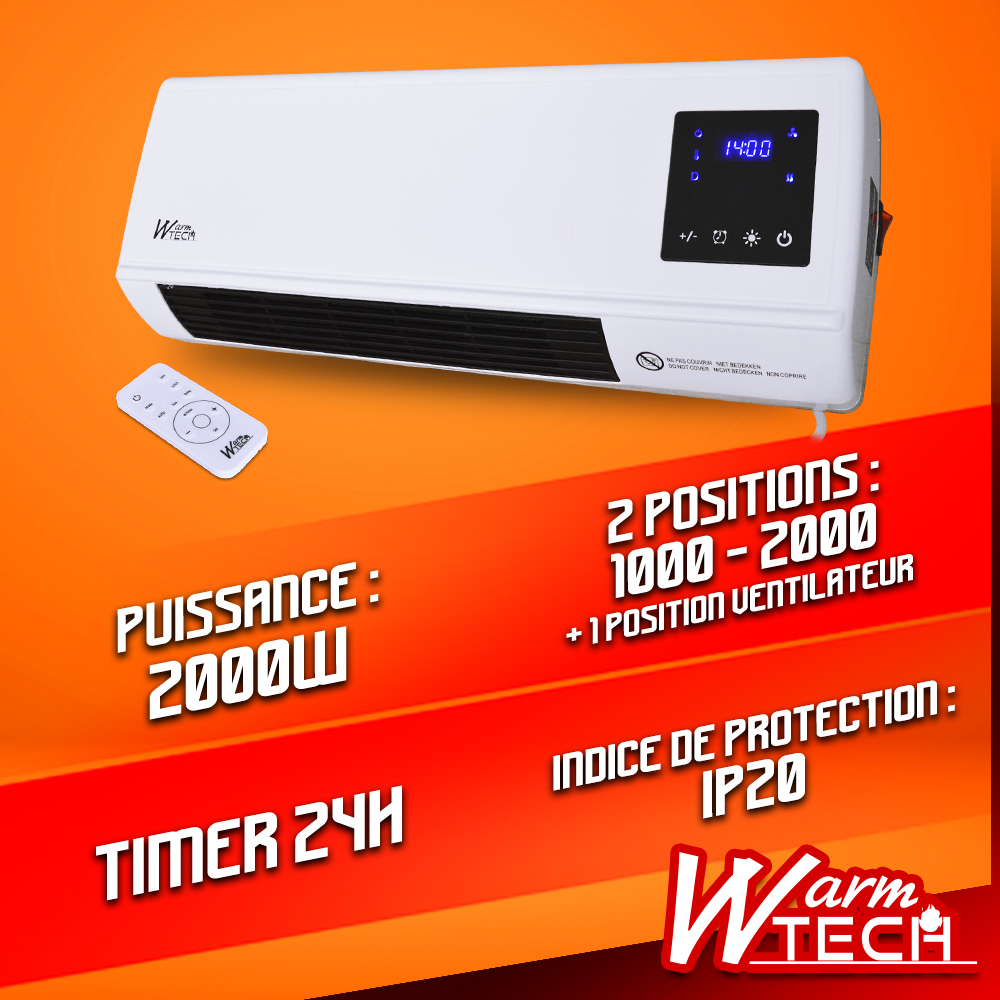 Radiateur soufflant céramique mural 2000W - Warm Tech