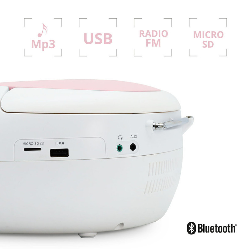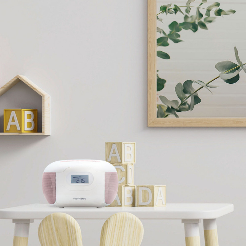 La collection PASTEL by METRONIC, avec ses couleurs douces et tendances, séduira les petits comme les grands. Son design déco tout en douceur apportera, en toute saison, une touche contemporaine à l'intérieur de votre maison. Ce lecteur CD compact a tout d'un grand avec ses multiples fonctions. En plus de son lecteur CD, profitez de la connectivité Bluetooth, d'un port USB, du lecteur de carte micro SD, de la Radio ainsi que dune entrée audio jack 3,5 mm pour écouter tous vos sons favoris. Vous bénéficiez également d'une touche programmation pour créer vos playlists et mémoriser vos stations de radio préférées. Grâce à sa poignée ergonomique et son fonctionnement sur piles (non fournies), vous pourrez profiter partout de votre musique. Compact, votre lecteur CD Eden a tout d'un grand Une puissance sonore performante de 6W (2 x 3 W) Multifonctionnel avec de nombreux types de connexions possibles pour profiter de votre musique Un design contemporain et élégant qui s'adapte à tous les intérieurs