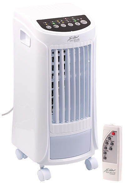 Bénéficiez d'un air frais et agréable dans votre pièce : équilibrez l'air ambiant pour vous sentir bien. 3 fonctions se complètent pour votre confort : rafraîchissement, humidification de l'air, et ionisation. Réglez le rafraîchissement parmi 3 niveaux, selon vos besoins. Grâce à la fonction d'oscillation, l'air frais est réparti de façon optimale dans la pièce. Pratique, le minuteur intégré vous permet de programmer le démarrage de l'appareil, de façon à préparer votre salon pour votre retour du travail, par exemple. Obtenez ainsi une atmosphère plus fraîche et plus agréable sans les inconvénients d'un climatiseur : pas d'air modifié, seulement un flux d'air frais obtenu par interaction avec l'eau fraîche stockée dans le réservoir spécifique. Un air frais et pur, même de nuit Et pour que l'expérience soit complète, l'ioniseur intégré débarrasse l'air de la poussière, de ses impuretés, et des odeurs désagréables. Il aide ainsi à lutter contre la prolifération des acariens et de certains virus. Il contribue donc activement à votre bien-être. Le souffle peut également être réglé de trois manières : souffle normal et continu, souffle naturel avec variations dans la puissance comme une véritable brise, et un mode silencieux pour profiter également de votre rafraîchisseur lors des chaudes nuits estivales. Grâce à sa haute efficience énergétique, le rafraîchisseur d'air ne consomme que 65 W ! Aucun climatiseur ne peut concurrencer une telle performance. Ventilateur 3 en 1 : rafraîchisseur d'air, humidificateur d'air et ioniseur "LW-450" par Sichler Pour un air frais et agréable : rafraîchit, purifie et humidifie Rafraîchissement agréable de l'air aspiré, réduction de 4 à 5 °C pour une chambre d'environ 13m² Ioniseur : élimine la poussière, les virus, les odeurs, les pollens et les bactéries présents dans l'air Idéal également à côté du lit, sur un balcon, sur une terrasse, etc. 3 modes réglables : Normal, Nature, Nuit 3 niveaux de vitesse : lent, moyen, rapide Minuteur réglable : 0,5 / 1 / 2 / 4 heures, durée programmable jusqu'à 7,5 heures Fonction oscillation verticale : le flux d'air couvre une zone allant jusqu'à 65° Lamelles d'aération horizontales, réglables manuellement Volumes d'air : 600 m³ / h Vitesse max. du flux d'air : 5,3 m / s Volumes d'évaporation : 200 ml / h Puissance : 65 W Réservoir d'eau amovible : capacité 4 L Filtre amovible Idéal pour une utilisation mobile grâce à 4 roulettes : facile à déplacer Utilisation facile : l'air chaud sortant ne doit pas être évacué à l'extérieur 2 poignées de transport latérales Télécommande sans fil pour les réglages Alimentation du rafraîchisseur d'air : 230 V (longueur du câble de raccordement : 170 cm) Alimentation de la télécommande : 2 piles AAA Micro (non fournies) Dimensions de l'appareil : 27,8 x 28,9 x 60,5 cm Poids de l'appareil : 4,9 kg Dimensions de la télécommande : 32 x 104 x 11 mm Poids de la télécommande : 24 g Inclus : télécommande Attention : cet appareil n'est pas un climatiseur