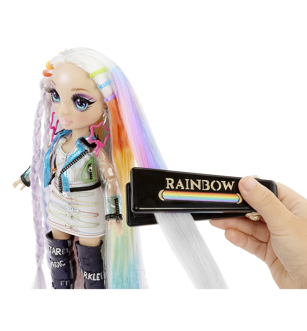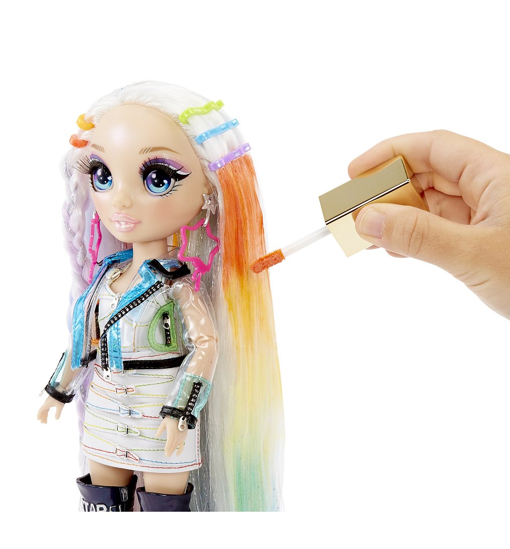 Avec le studio de coiffure Rainbow High, colores les cheveux de Amaya Raine à l’infini! En plus, les produits de coloration pour cheveux peuvent également être utilisés sur de vrais cheveux!! Tu peux maintenant avoir la même coiffure que Amaya!