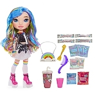 Découvre 1 grande poupée Rainbow Surprise de 40 cm et tous les ingrédients pour fabriquer du slime pailleté. Ajoute ton slime dans les tenues de ta poupée pour transformer son style. Inclus 1 poupée avec tenue complète, 1 paire de chaussures ou patins à roulettes, 1 sac à main, 1 peigne, 1 gobelet avec couvercle, 1 tasse graduée, 1 cuillère, 4 sachets de poudre de slime, 3 sachets de poudre scintillante, 2 sachets de paillettes, 1 sachet de poudre brillante. Modèles assortis. Dès 6 ans.