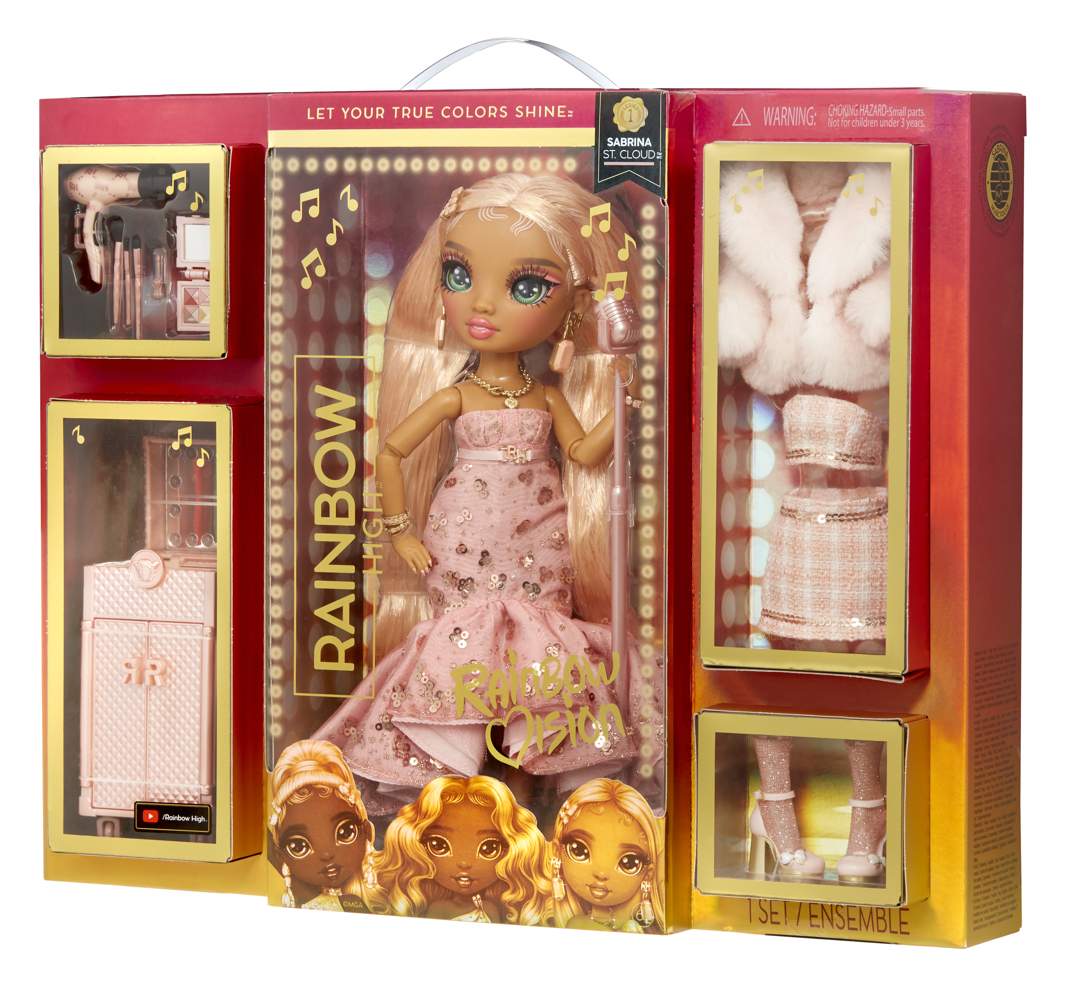 La crème de la crème des écoles d’arts du monde entier se donne rendez-vous au concours de musique ultime : Rainbow Vision. Des centaines de participants vont s’affronter pour révéler leurs talents au monde entier mais à la fin, seule une école vaincra ! Contient 1 poupée, 2 tenues, accessoires, 1 micro avec pied, 1 valise de train, 1 sèche-cheveux, 1 petite palette, 1 rouge à lèvres, 3 pinceaux de maquillage, 1 peigne et 1 socle de poupée.