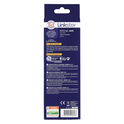 | Libellé | Rallonge jack 3,5mm mâle/femelle - 1,5m - Sélection d’Experts - Linkster |