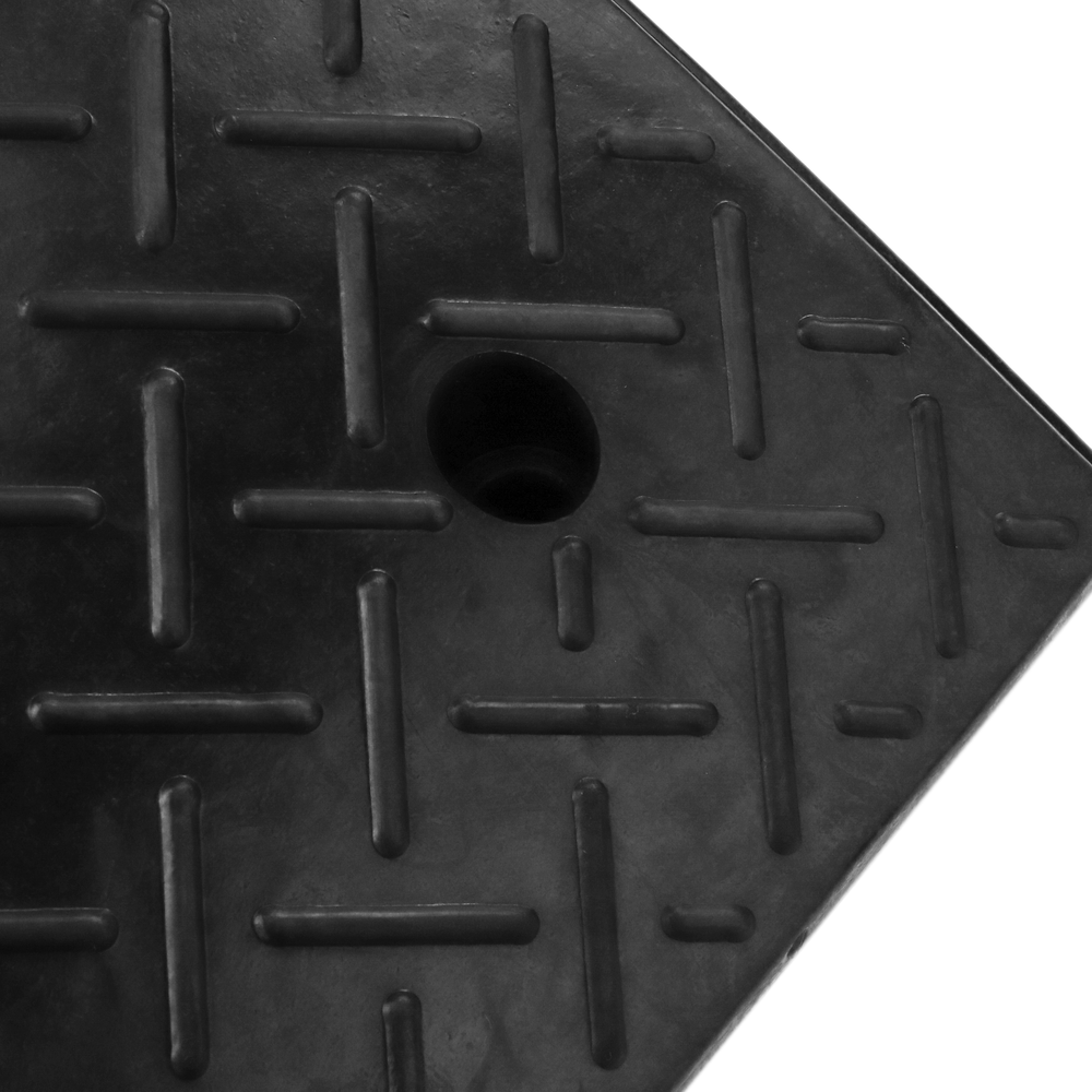 Rampe en caoutchouc pour faciliter le passage entre différentes hauteurs et petites pentes. Idéal pour aider à la circulation des voitures, motos, voitures, transpalettes, fauteuils roulants, etc. Permet la configuration en tant que réducteur de vitesse, montage de 2 unités opposées. Fabriqué en caoutchouc à haute résistance aux chocs, absorbant le bruit et a une rugosité pour éviter de glisser. Spécifications Rampe en caoutchouc haute résistance pour faciliter le passage. 1 unité. Passerelle avec surface antidérapante idéale pour le passage de voitures, motos, voitures, transpalettes, fauteuils roulants, etc. Permet la configuration en tant que réducteur de vitesse, en montant 2 unités opposées (achetées séparément). Il a deux trous pour la fixation au sol à l'aide de vis (non incluses). Dimensions: 48 x 13 x 32 cm (largeur x hauteur x profondeur).