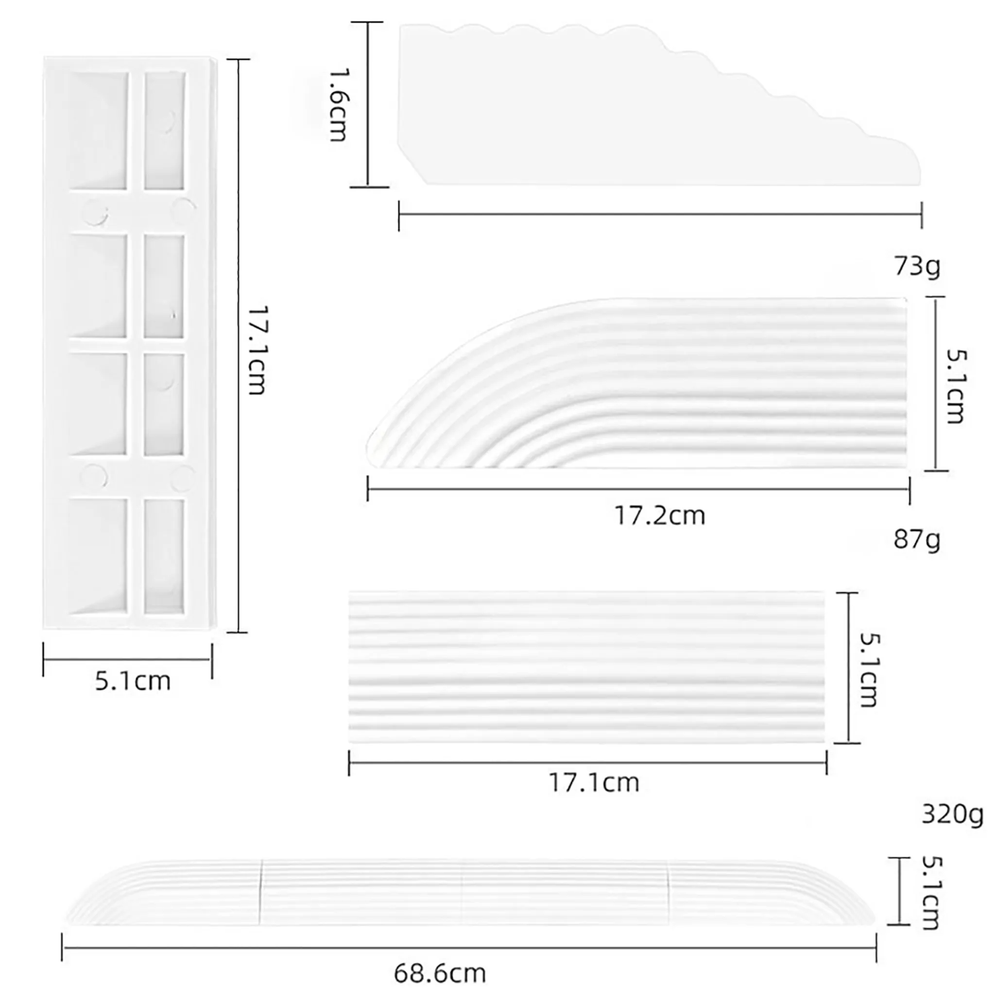 Dimensions : 17,1x5,1 cm et 68,6x5,1 cm