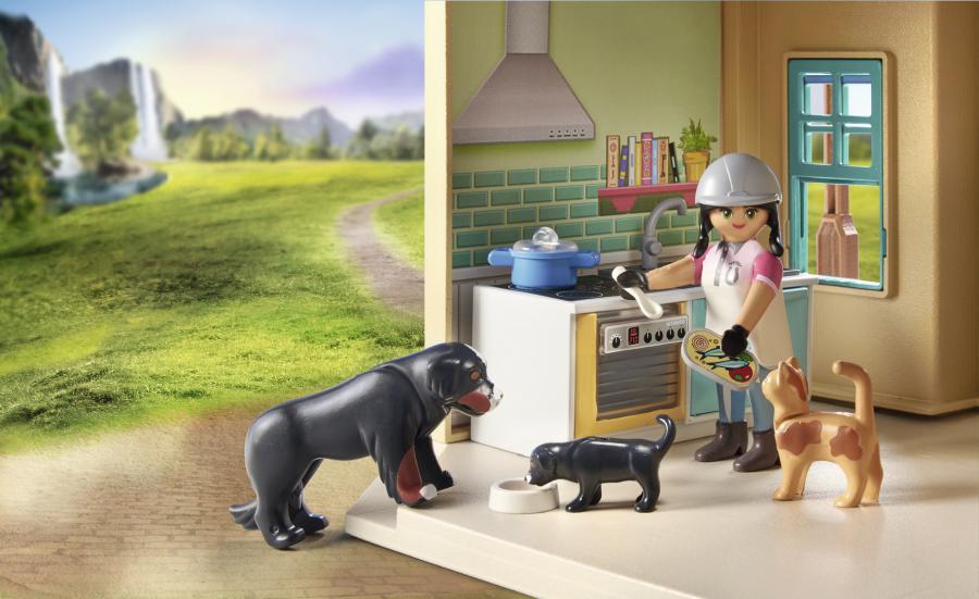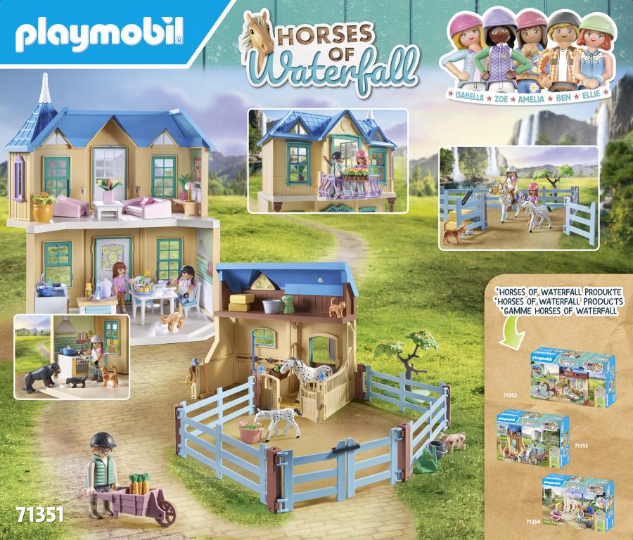 Aux pieds des montagnes, en face d’impressionnantes chutes d’eau, se trouve le Ranch de la Cascade. Ce centre équestre est populaire aussi bien auprès des enfants que des parents, qui l’associe à des souvenirs précieux. Comprend trois personnages, une jument et son poulain.