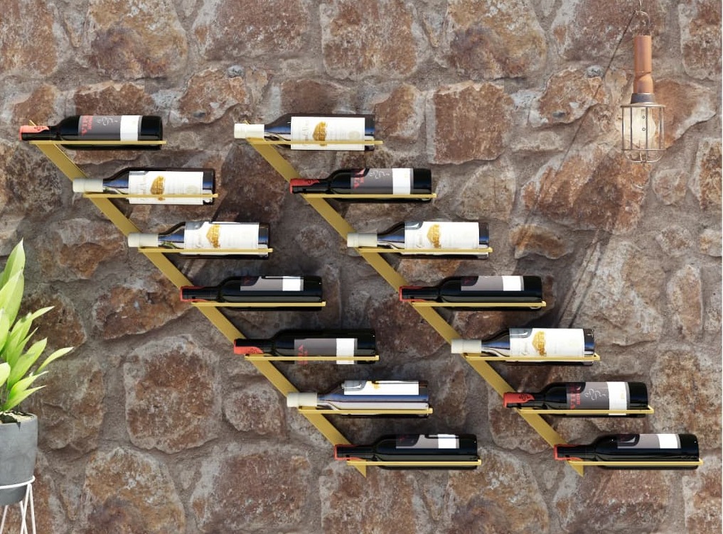 Range-bouteilles mural en métal KORY – 7 ou 14 bouteilles-Doré-Nombre de bouteilles 14