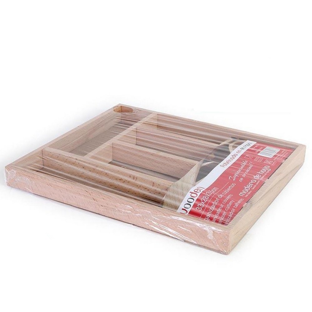 Ce range couverts en bois vous permet de ranger tous vos couverts dans un tiroir ou sur le plan de travail ! Ces 5 compartiments laissent la place pour tous les couverts et les longs couteaux. Le bois donne un côté chaleureux et a une grande espérance de vie. Il est durable et vous accomagnera longtemps. Dimensions : 33 x 28 x 3,5 cm
