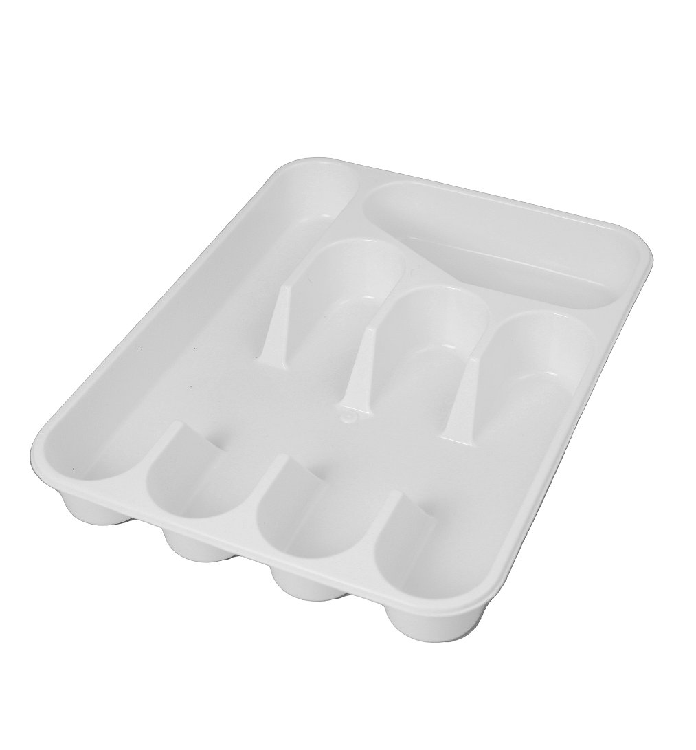 Range-couverts 5 cases en plastique - dimensions : 26x33,5cm - blanc