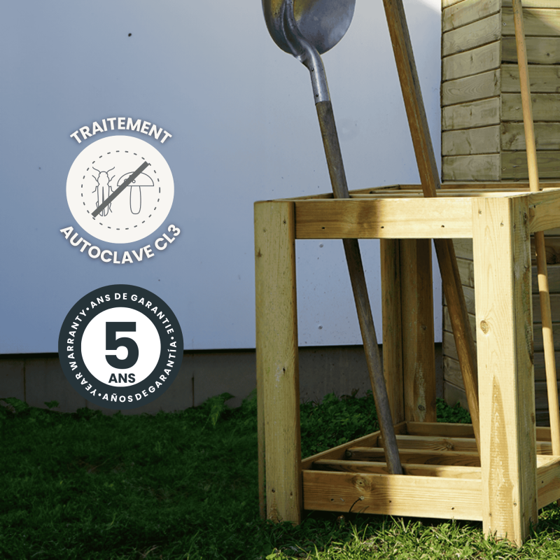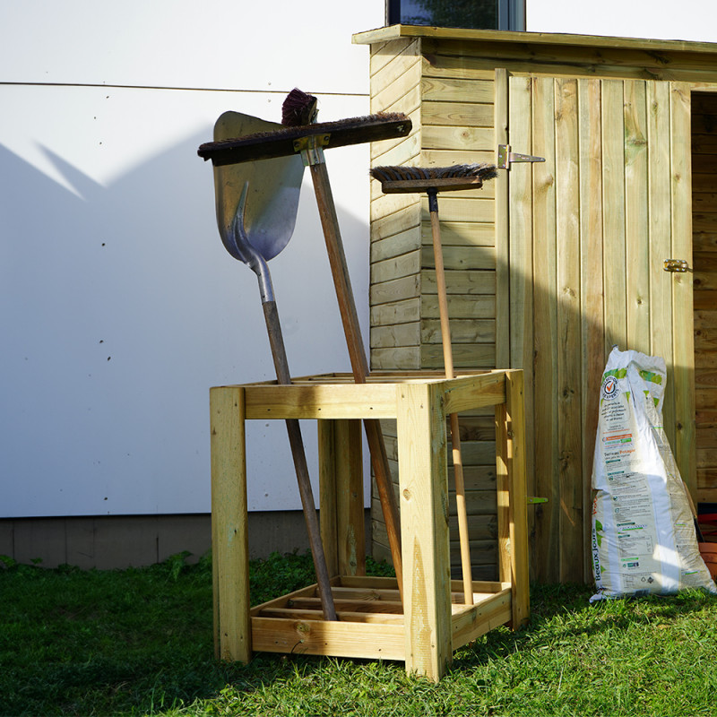 Range-outils en pin européen traité. Dimensions 60 x 60 x 75 cm. Livré en kit.