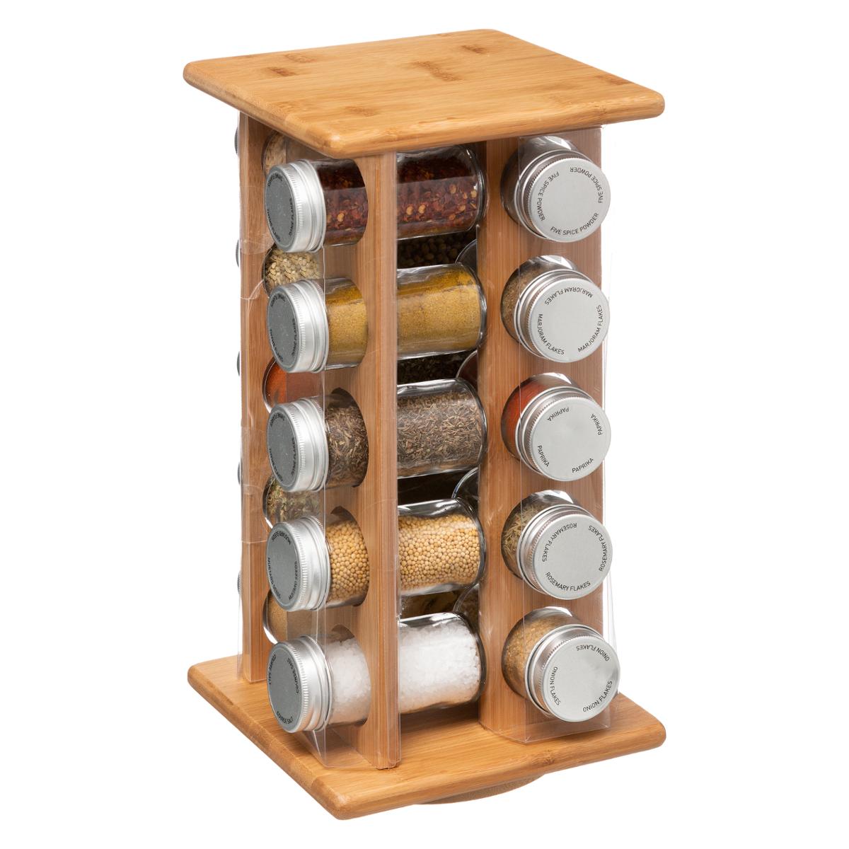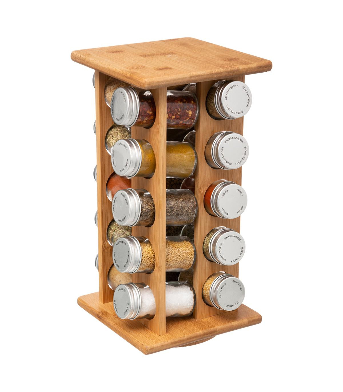 Rangement à Épices Présentoir en Bambou et 20 Pots en verre Épices incluses --