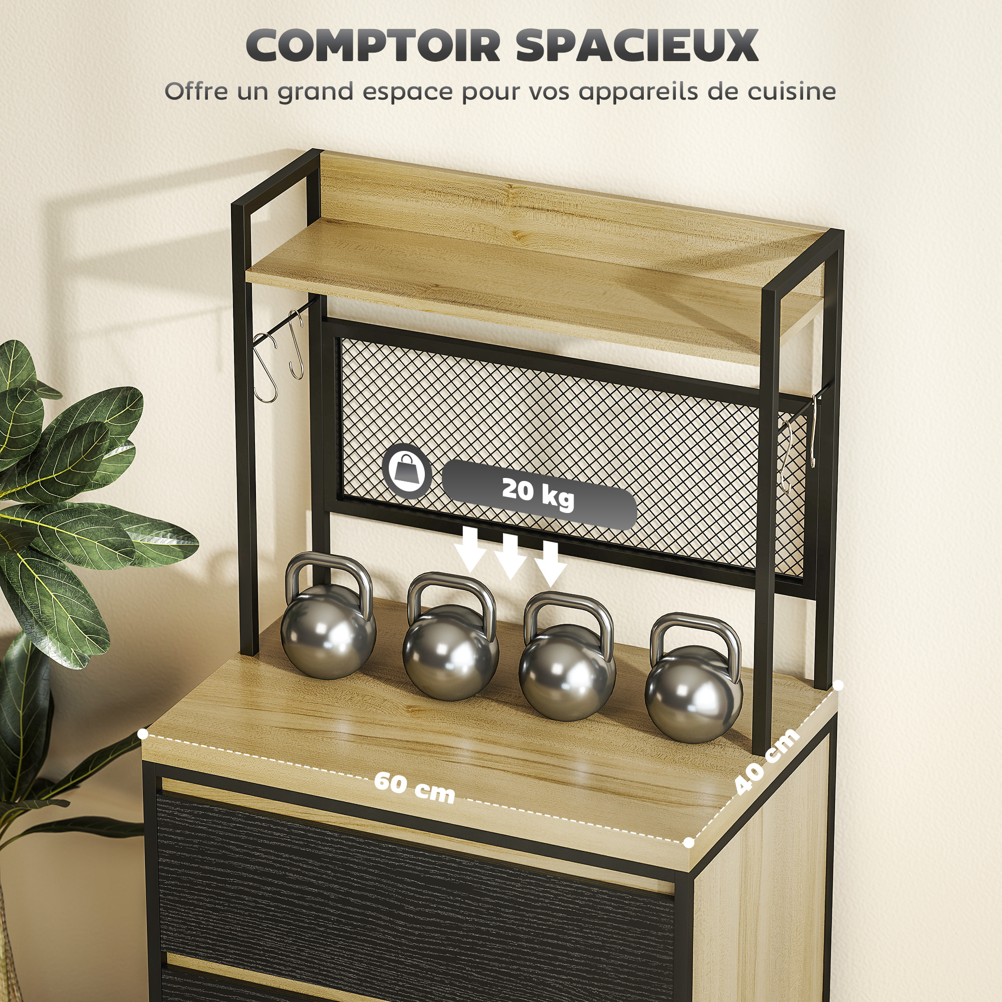 Découvrez l'armoire de cuisine HOMCOM : 3 tiroirs, étagère sécurisée, large plateau pour micro-ondes et 4 crochets amovibles pour un rangement pratique. Son design industriel allie style et fonctionnalité pour sublimer votre intérieur.