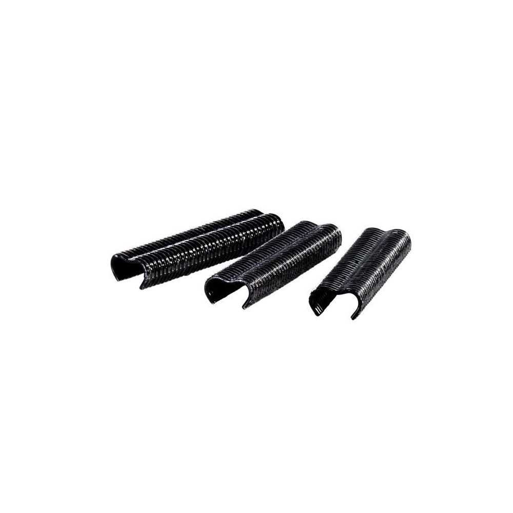 Blister de 215 agrafes VR22 en acier plastifié noir pour fixation de grillages et fils de clôture.