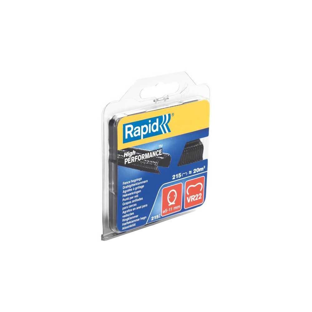 RAPID VR22 - Blister 215 agrafes pour grillage noires (diam. fermeture 5–11 mm)