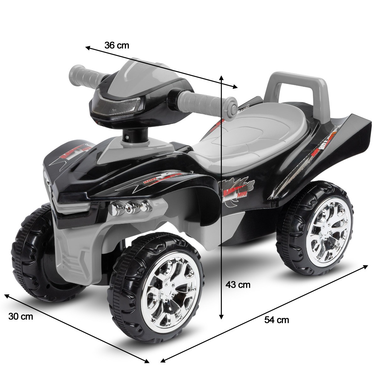Le quad est un jeu ludique apprécié des adultes et des plus jeunes. Le RAPTOR est un quad porteur musical qui peut être utilisé comme pousseur. Avant que l'enfant ne monte sur le quad il doit pouvoir tenir assis seul.