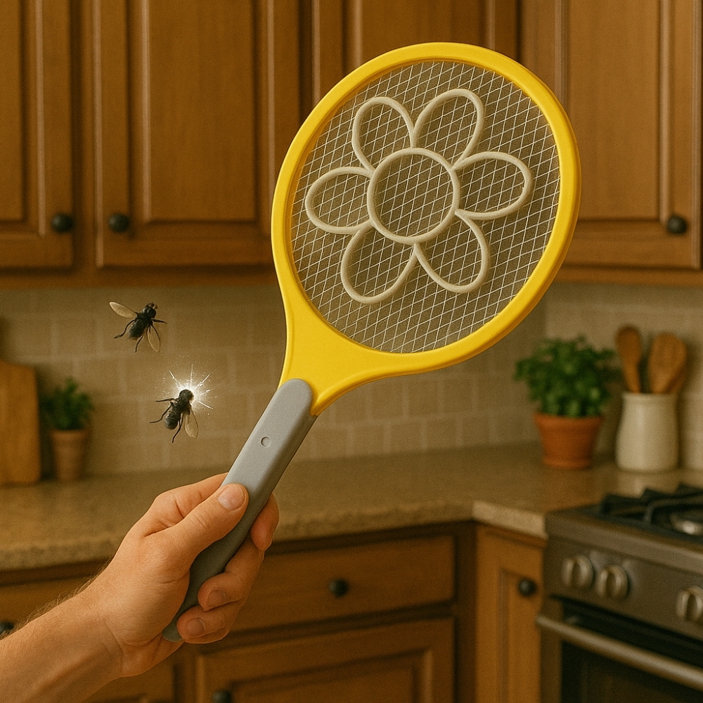 Parfait pour l’été, cette raquette anti-moustique électrique à piles format XL vous protège efficacement contre les insectes volants lors de vos soirées et activités en plein air. Protégez-vous efficacement des insectes volants avec cette raquette anti-moustique électrique à piles, au format XL de 48 cm. Grâce à sa grille haute tension, elle neutralise instantanément moustiques, mouches et autres nuisibles au simple contact, sans utilisation de produits chimiques nocifs. Sa taille généreuse permet une plus grande surface de frappe pour éliminer rapidement les insectes. Facile à utiliser, cette raquette fonctionne à piles, ce qui la rend pratique à emporter partout, aussi bien à l’intérieur qu’à l’extérieur. Son design ergonomique assure une bonne prise en main pour une utilisation confortable et efficace. Idéale pour les soirées d’été, les camping ou toute activité en plein air, cette raquette est un outil indispensable pour garder votre environnement sain et sans insectes. Simple, rapide et écologique, elle offre une solution moderne et sûre pour vous protéger des moustiques et autres insectes volants. -Format XL de 48 cm pour une efficacité maximale : Avec sa grande taille, cette raquette offre une surface de frappe étendue, permettant de capturer et éliminer rapidement un plus grand nombre d’insectes volants en un seul geste. Idéale pour les espaces intérieurs comme extérieurs. -Grille haute tension ultra-performante : La technologie de grille électrifiée génère une décharge électrique puissante qui neutralise instantanément moustiques, mouches, moucherons et autres insectes volants nuisibles, garantissant une solution rapide et sans produits chimiques. -Alimentation pratique par piles (non fournies) : Cette raquette fonctionne grâce à des piles, ce qui la rend totalement portable, autonome et simple à utiliser partout — en camping, jardin, terrasse, ou même en intérieur sans dépendance à une prise électrique. -Design ergonomique et robuste : Sa poignée antidérapante assure une prise en main confortable et sécurisée, permettant une utilisation prolongée sans fatigue. Le cadre solide et léger assure une bonne maniabilité et une grande durabilité dans le temps. -Système de sécurité double grille : Pour protéger l’utilisateur, la raquette est équipée d’une grille extérieure de protection empêchant tout contact accidentel avec la grille électrifiée interne, offrant ainsi une utilisation sécurisée, même en présence d’enfants. CARACTÉRISTIQUES: Raquette anti-moustique électrique à piles, format XL de 48 cm, équipée d’une grille haute tension pour éliminer efficacement les insectes volants. Pratique et facile à utiliser, elle offre une protection rapide sans produits chimiques. -Type de produit : Raquette anti-moustique électrique -Alimentation : Fonctionne avec piles (non fournies) -Dimensions : Environ 48 cm de long -Coloris: Aléatoire (Vert ou Jaune) -Matériau : Plastique résistant et léger -Efficacité : Élimination rapide des moustiques, mouches, guêpes et autres insectes volants -Poids : 210g
