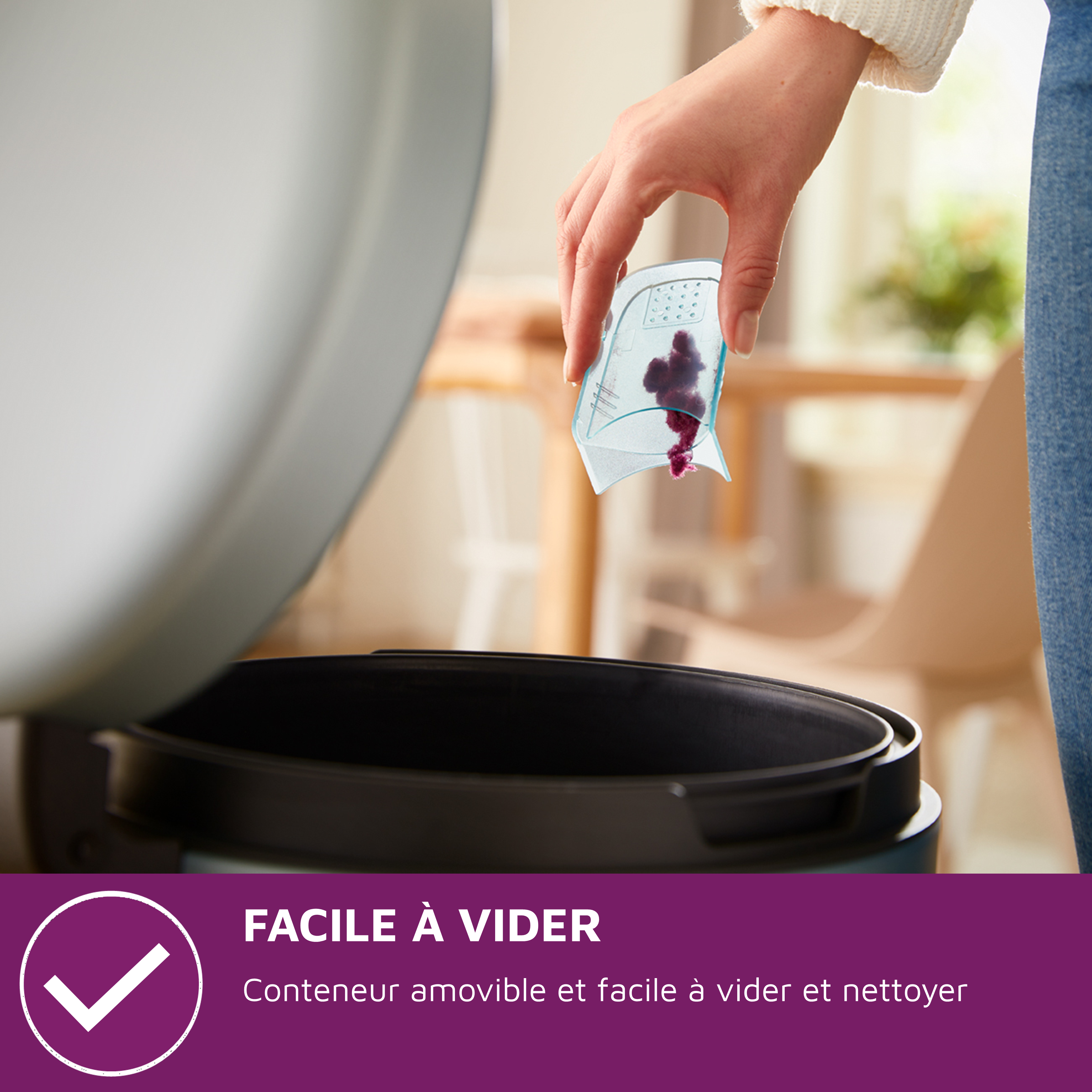 Le réceptacle recueillant les bouloches est facile à retirer et à vider.