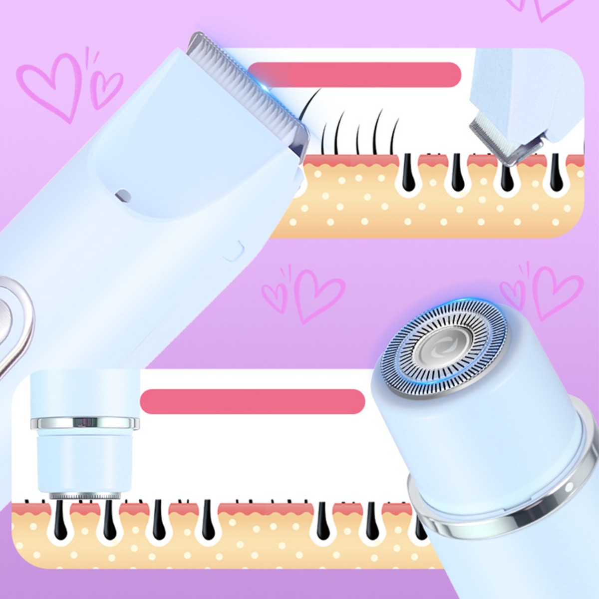 Rasoir Électrique 2-en-1 Double Tête & Tondeuse Bikini pour Femmes - Portable & Rechargeable Blue