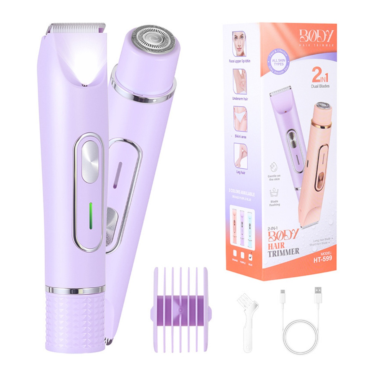 | Libellé | Rasoir Électrique 2-en-1 Double Tête & Tondeuse Bikini pour Femmes - Portable & Rechargeable Purple |