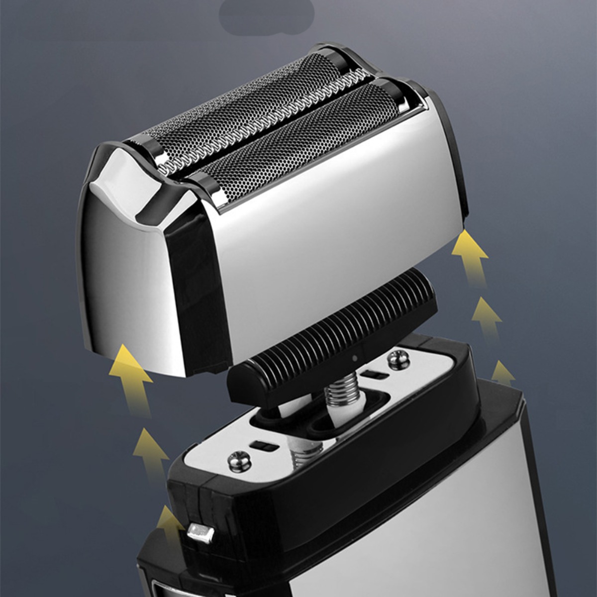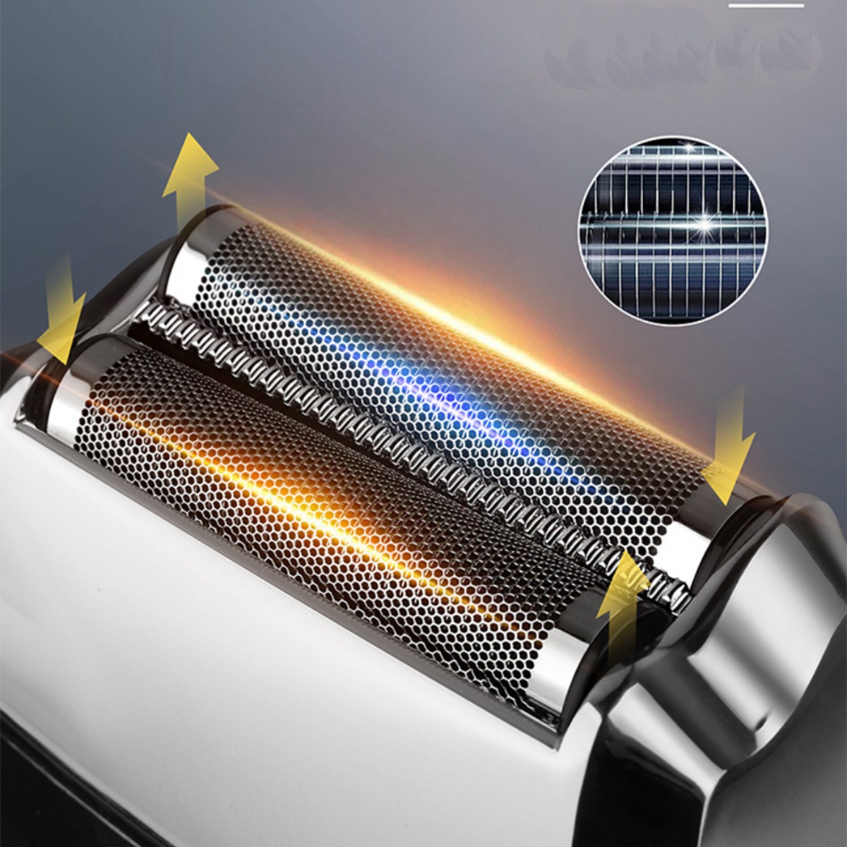 Passer le carrousel d'imagesRasage de près précis: Profitez d'un rasage exceptionnellement précis et confortable avec notre rasoir électrique. Le système à double lame et la grande surface de la lame sont conçus pour capturer plus de poils en moins de passages, réduisant ainsi l'irritation et offrant une finition lisse. La conception géométrique en maille assure une capture précise de la barbe, tandis que la tête flottante s'adapte parfaitement aux contours de votre visage pour un rasage propre et uniforme. Ce rasoir est parfait pour obtenir un look de crâne chauve avec un minimum d'effort et un maximum de confort. Le rasoir est compatible avec différents types de peau, assurant une expérience de rasage douce mais efficace. Idéal pour un usage quotidien et les voyages.