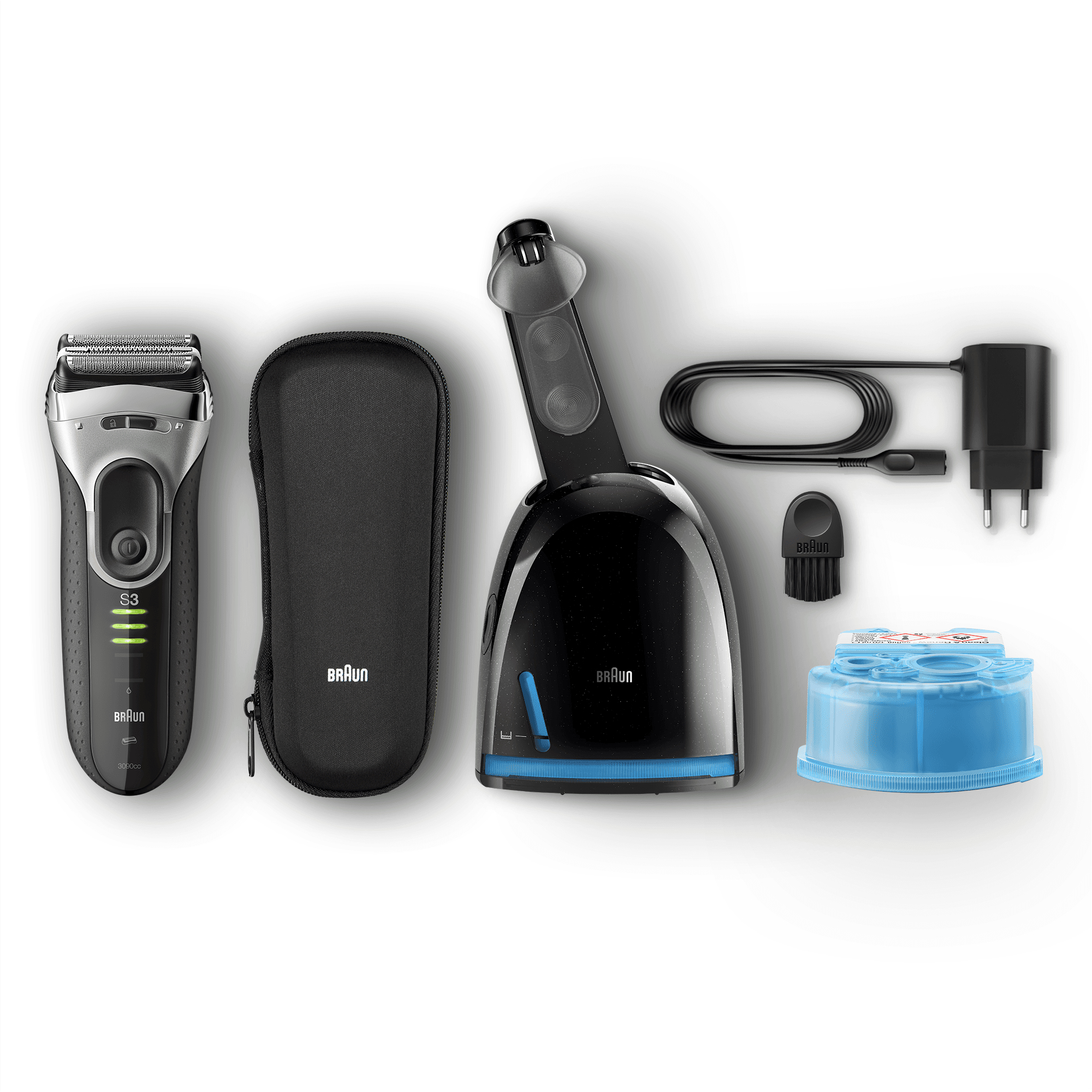 Rasoir électrique rechargeable et secteur avec clean & charge serie 3 - 3-3090cc - braun