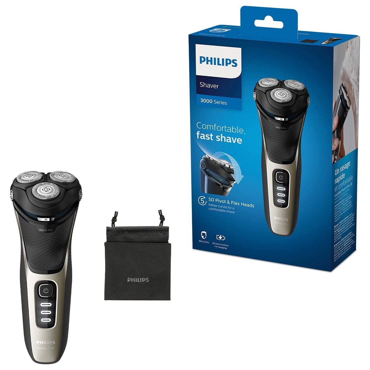 S3230-52 - rasoir électrique rechargeable étanche - Rasoir électrique rechargeable 100% étanche S3230-52 de Philips pour un rasage rapide et confortable. Le rasoir Philips Series 3000 permet un rasage pratique et confortable. Avec ses têtes 5D Pivot & Flex et ses lames PowerCut, il procure un rasage impeccable agréable, aussi bien à sec qu'avec de la mousse à raser ou du gel. Manche : Design ergonomique pour une bonne prise en main. - Type de produit : Rasoir électrique rechargeable.