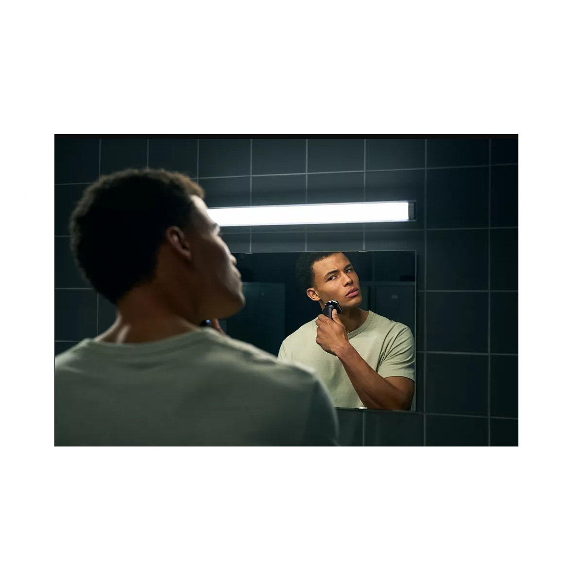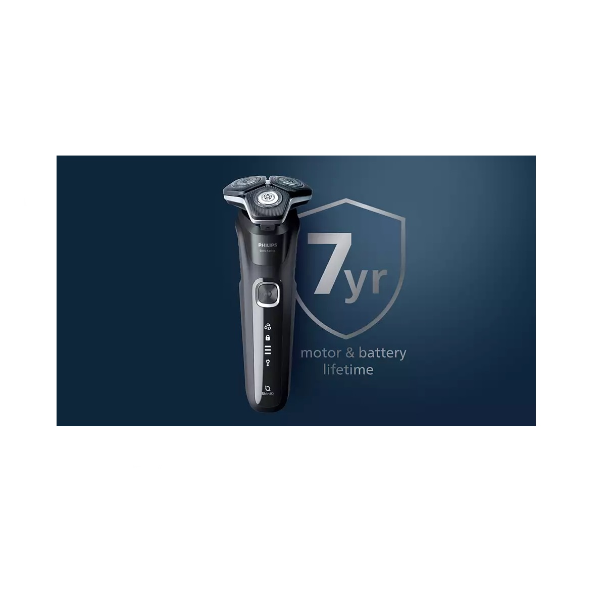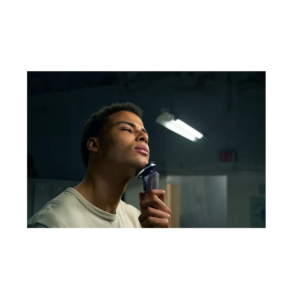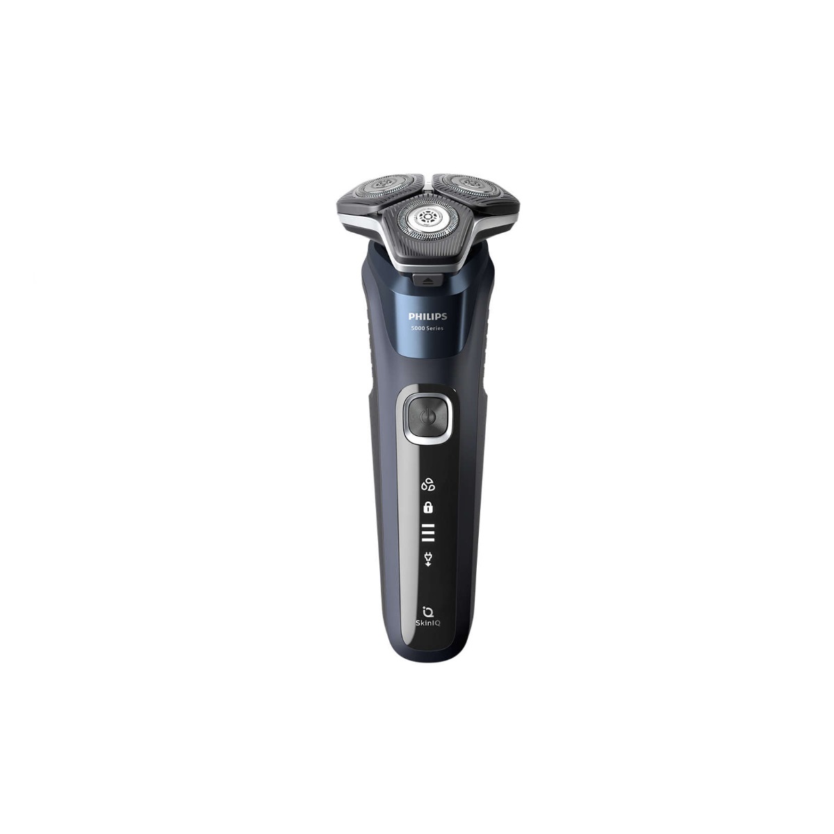 S5885-25 - rasoir électrique rechargeable - Le rasoir électrique S5885-25 de Philips offre un rasage puissant et coupe encore plus de poils par passage.* Grâce à sa technologie avancée SkinIQ, ce rasoir détecte et s'adapte à la densité de votre barbe, pour un meilleur confort cutané. Les lames SteelPrecision réalisent jusqu'à 90 000 coupes par minute, pour un rasage de près coupant un plus grand nombre de poils par passage*. Les 45 lames hautes performances affûtées sont fabriquées en Europe. La nouvelle forme des têtes de rasage a été pensée pour offrir une plus grande précision. Leur surface est dotée de canaux de guidage des poils conçus pour les positionner de manière à permettre une coupe efficace. Finalisez votre style avec la tondeuse de précision rétractable de ce rasoir. Intégrée au corps du rasoir, elle est idéale pour entretenir sa moustache et tailler ses pattes. Le capteur intelligent de pilosité faciale détecte la densité des poils 250 fois par seconde. Cette technologie dynamique modifie automatiquement la puissance de coupe pour vous procurer un rasage en douceur et sans effort. Nettoyez facilement le rasoir. Il vous suffit d'appuyer sur un bouton pour ouvrir la tête de rasage et rincer à l'eau. Obtenez jusqu'à 60 minutes de rasage sans fil par charge complète. Les têtes entièrement flexibles pivotent à 360° pour suivre les contours de votre visage. Bénéficiez d'un contact optimal avec la peau pour un rasage impeccable et confortable. Adaptez votre technique de rasage à vos besoins. Avec le système Wet & Dry, vous pouvez opter pour un rasage à sec confortable, ou pour un rasage rafraîchissant sur peau humide - avec du gel ou de la mousse - même sous la douche. Chargez votre rasoir entièrement en seulement 1 heure, grâce à la batterie Lithium-ion puissante et efficace. Si vous êtes pressé, une charge de 5 minutes vous permet d'avoir suffisamment d'autonomie pour un rasage complet.