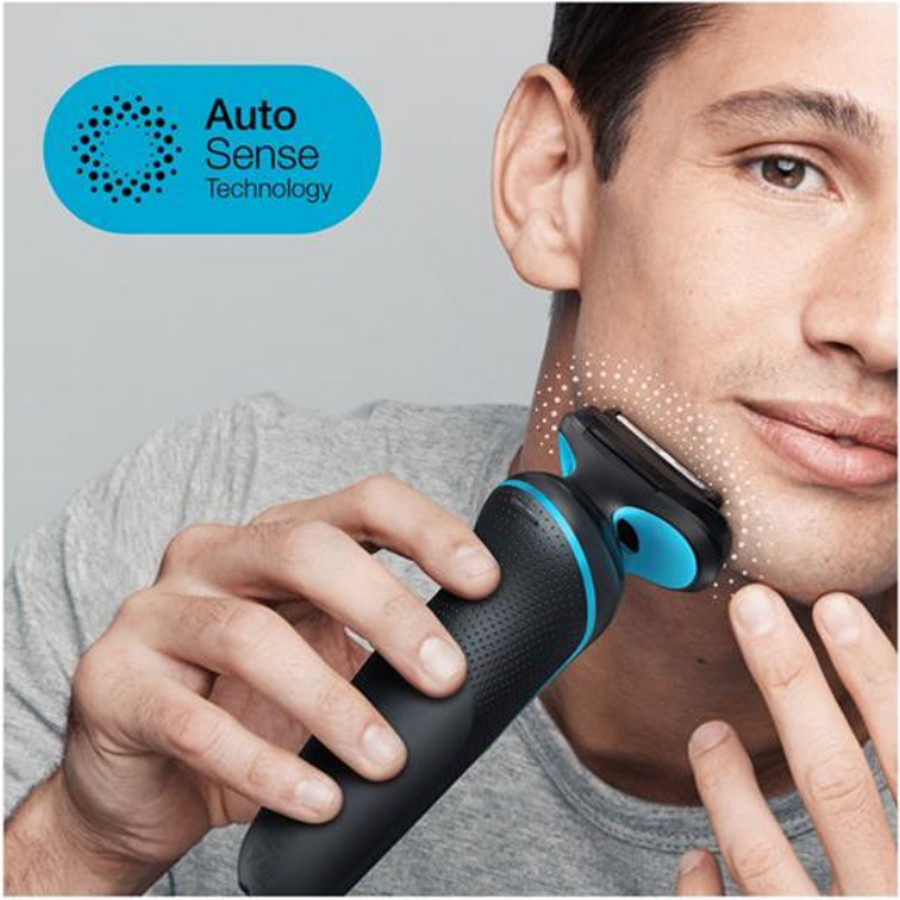 51M1200S - rasoir électrique rechargeable - Rasoir électrique rechargeable Braun 51M1200S facile à utiliser, facile à nettoyer ! Autonomie 50 minutes pour 1 heure de charge. Utilisable sous l'eau ou à sec, avec ou sans mousse. Tête de rasoir flexible, dans 8 directions, pour épouser les contours du visage (3 éléments de coupe flottants et indépendants). Ce rasoir est doté de la technologie AutoSense qui analyse la densité et l'épaisseur des poils et adapte automatiquement la puissance du moteur. La grille SensoFoil possède des trous ergonomiquement calibrés pour couper les poils plus facilement. Tondeuse de précision rétractable pour des finitions parfaites. Grip ergonomique pour une meilleure prise en main. Système de nettoyage sous l'eau simplifié Easy Clean : plus besoin de retirer la tête. Mode charge rapide en 5 minutes pour un rasage complet.