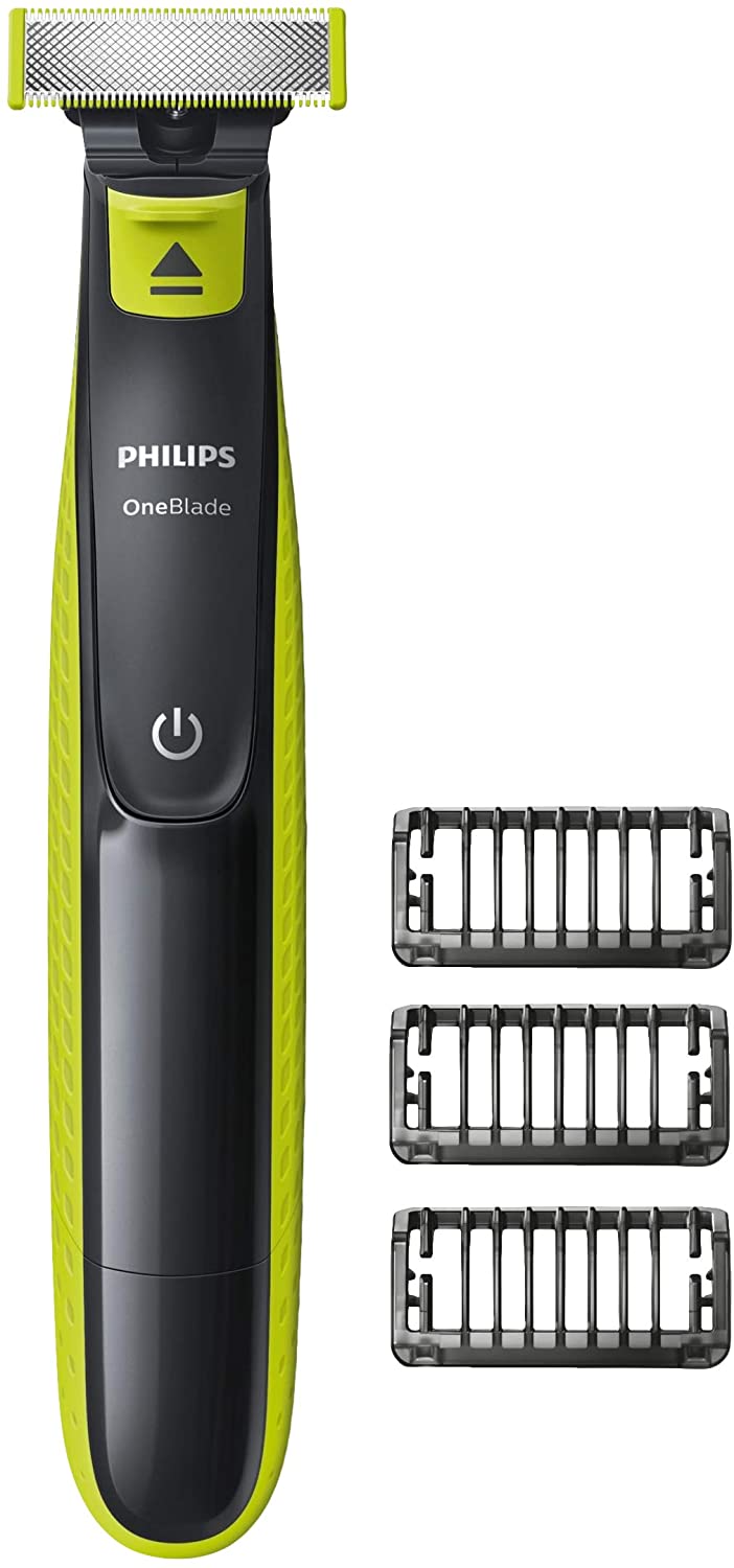 Durable OneBlade dure jusqu "à 4 mois 3 peignes de barbe clipsable 1, 3 et 5 mm (incluse) Utilisation pour le rasage humide et sec, ajustement et bordure Revêtement de glissement et bouts arrondis conçus pour protéger votre peau 8 heures de charge – 45 minutes Le temps de fonctionnement