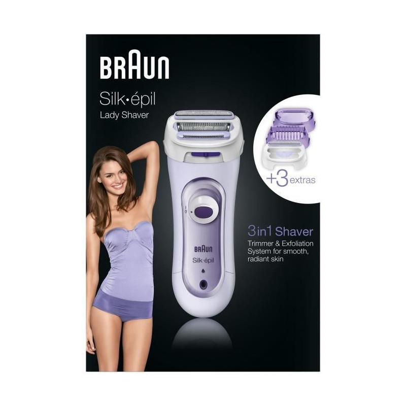 ls5560 - rasoir féminin rechargeable étanche - Rasoir Silk Epil Lady Shave Braun LS5560 est doté de 3 têtes (rasage, exfoliation et tondeuse bikini), il est si doux sur la peau qu'il est idéal pour traiter les zones sensibles et délicates- La grille flottante et la tondeuse s'adaptent en douceur aux contours du corps féminin- Ce système permet d'obtenir un rasage parfait, au plus près avec moins de pression et un plus grand confort- Pour une peau parfaitement nette , le rasage de près est suivi d'un peeling léger (accessoire exfoliant).
