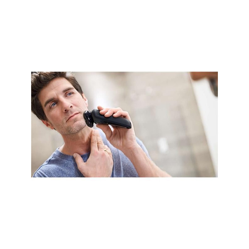 Rasoir 3 têtes - Series 5000 - Un rasage puissant en coupant encore plus de poils pas passage ! - Technologie avancée SkinIQ qui permet de détecter et de s'adapter à la densité de la barbe pour un meilleur confort cutané - Têtes flexibles pivotant à 360° qui suivent le contour du visage et conçues pour donner aux poils une position de coupe efficace - Lames SteelPrecision : 45 lames hautes performance qui réalisent jusqu'à 90 000 coupes par minutes - Pratique : efficace sur peau humide, sèche et même sous la douche - Tondeuse de précision rétractable intégrée - Autonomie 60 minutes pour 1 h de charge - Charge rapide de 5 minutes pour 1 rasage complet - Affichage LED avec icônes pour une utilisation intuitive du rasoir - Capot de protection, trousse de rangement et brossette de nettoyage - Tête de rechange SH71 - Batterie Lithium-ion - Garantie 2 ans.