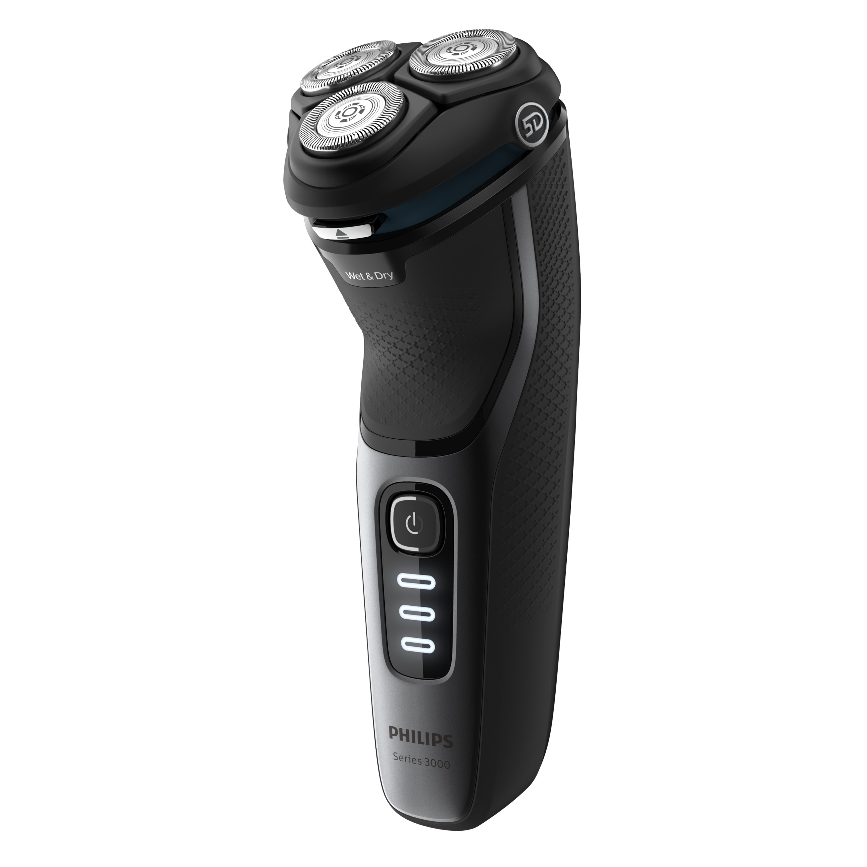 Le rasoir Philips Séries 3000 permet un rasage pratique et confortable. Avec ses têtes 5D Pivot & Flex et ses lames PowerCut, il procure un rasage impeccable agréable, aussi à sec qu'avec de la mousse à raser ou du gel.