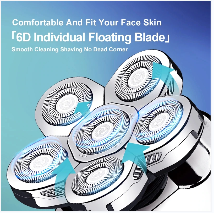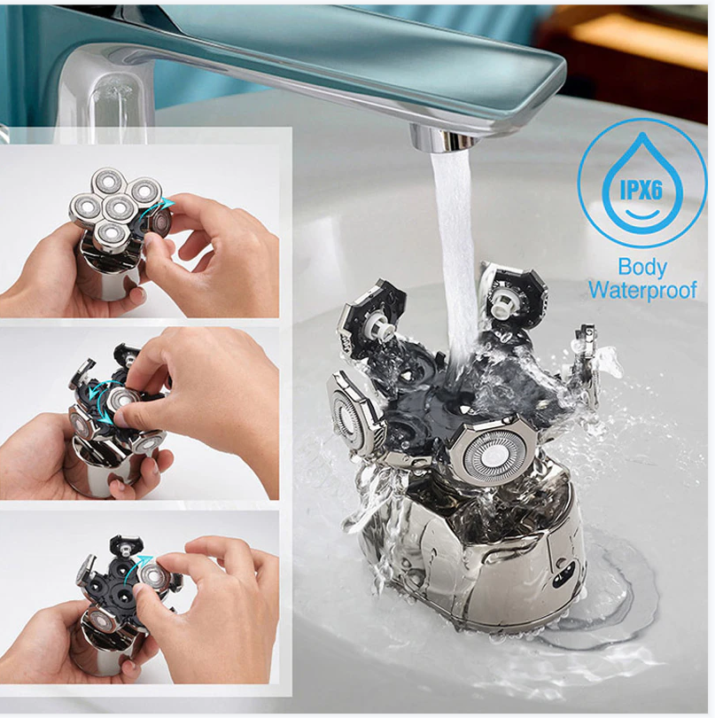 Utilisation flexible : Le rasoir fonctionne aussi bien en utilisation humide que sèche. Équipé de 6 têtes différentes, il peut être utilisé pour le rasage, la tonte et le massage.