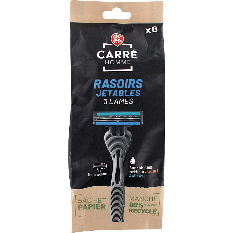 J'ai l'habitude d'acheter des rasoirs 3 lames Xtreme de Wilkinson top de chez top 15 j de rasage et lames flexible un peu plus écartées pour les nettoyer Les rasoirs jetables carré d'homme sont franchement bas de gamme difficile a retirer les poils, difficile d'oter la protection lame