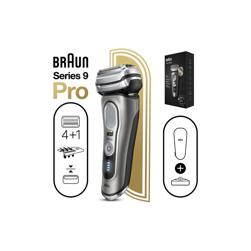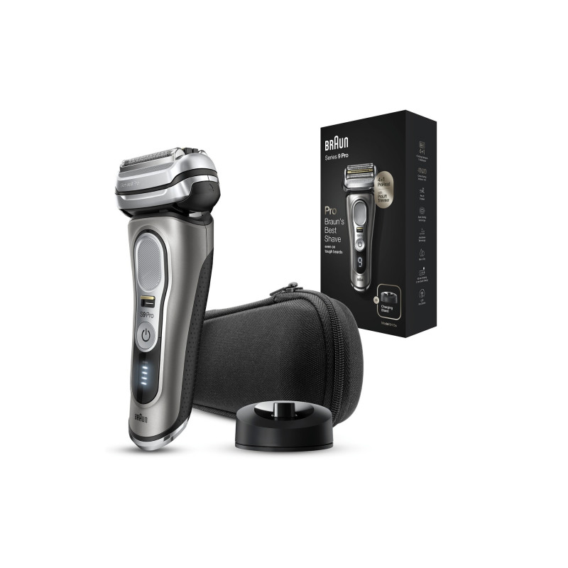 Braun Series 9 9415s. Système de rasage: Rasoir à grille, Technologies du système de rasage: Sonic, Auto senseur. Couleur du produit: Noir, Argent, Voyants: Chargement. Source d'alimentation: Batterie, Technologie batterie: Lithium-Ion (Li-Ion), Durée de fonctionnement (min): 60 min. Poids: 450 g. Fonctions de la station de rasage: Chargement