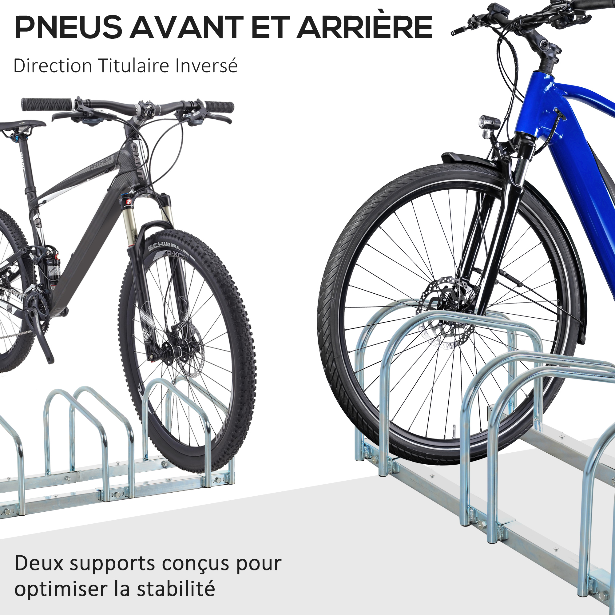 - Conçu pour une installation au sol avec capacité de rangement de 5 vélos maximum