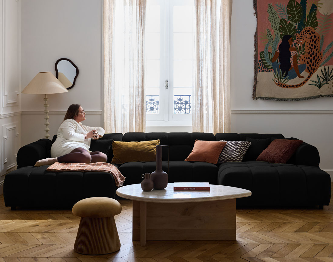 Le Ray - canapé panoramique en U 7 places en tissu texturé est l’incarnation du confort et du style. Sa assise généreusement rebondie est spécialement conçue pour offrir un confort optimal et durable, vous permettant de profiter de moments de détente prolongés. L’assise bombée, douce comme un nuage, vous enveloppe agréablement, apportant une sensation de légèreté à chaque utilisation. Le dossier incurvé, quant à lui, assure un soutien parfait et une posture idéale, transformant votre salon en un véritable espace de relaxation.
