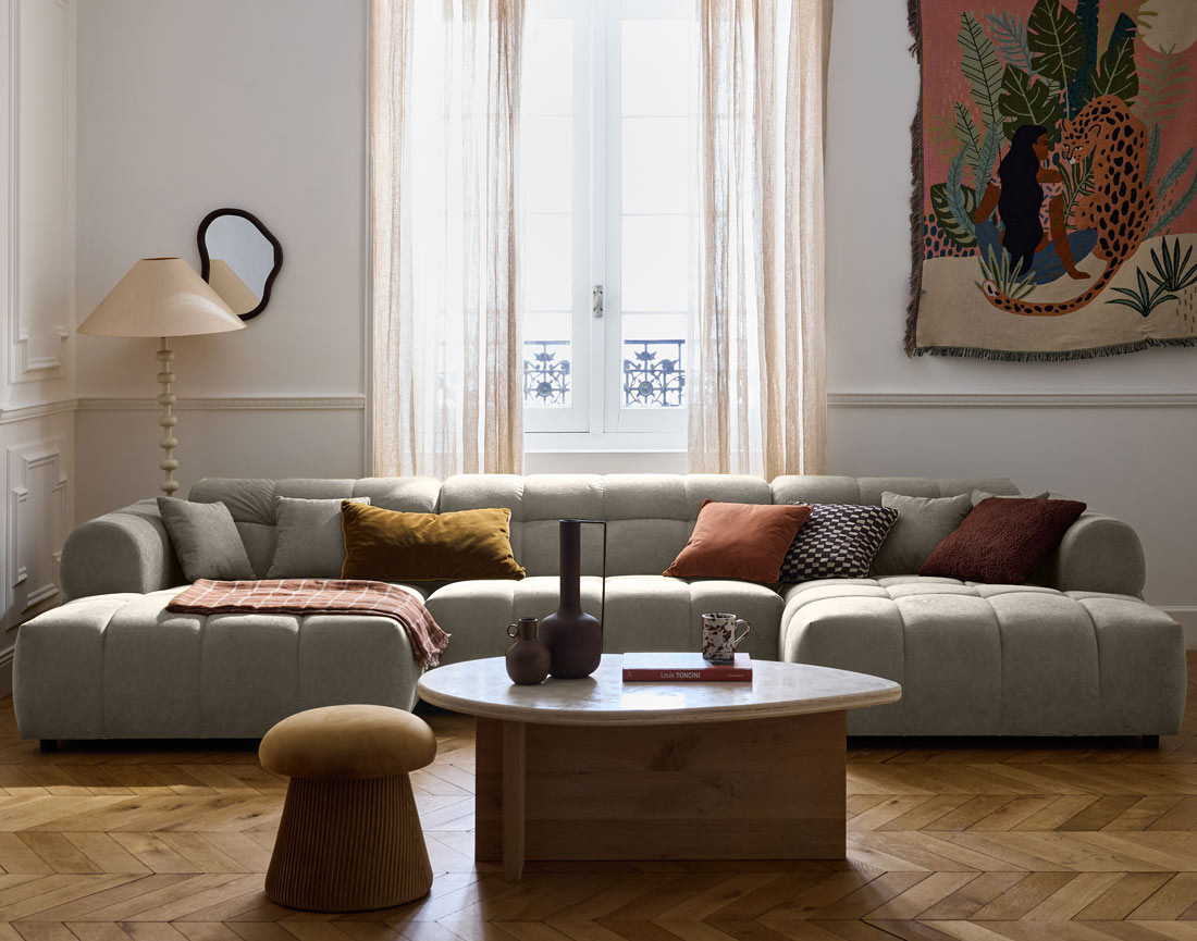 Ray - canapé panoramique en U 7 places en tissu texturé