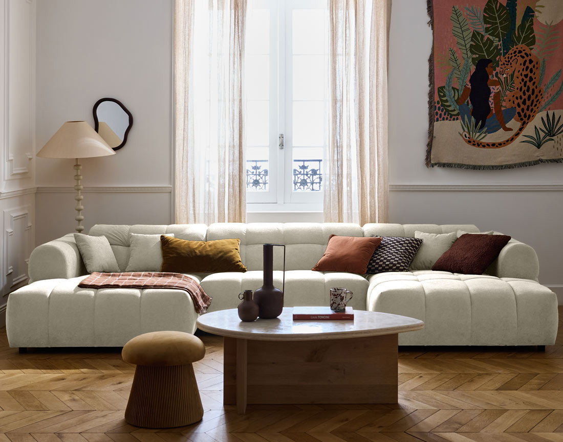 Ray - canapé panoramique en U 7 places en tissu texturé