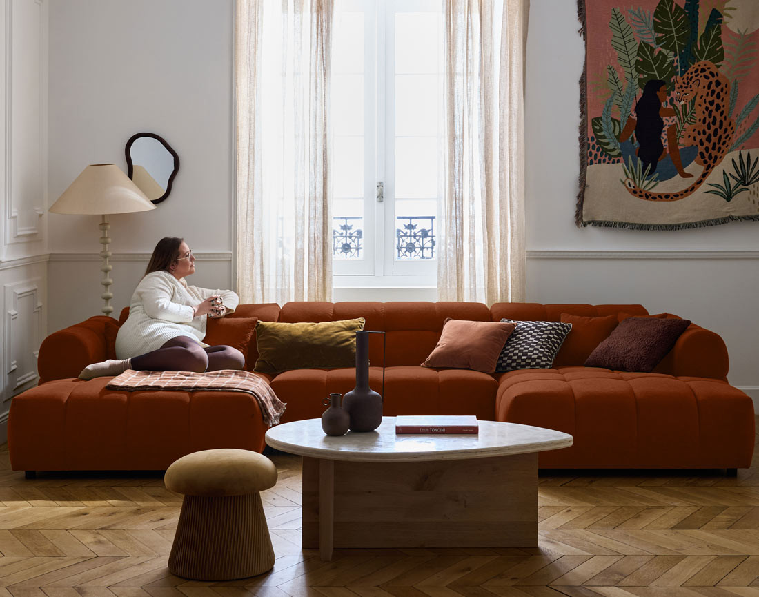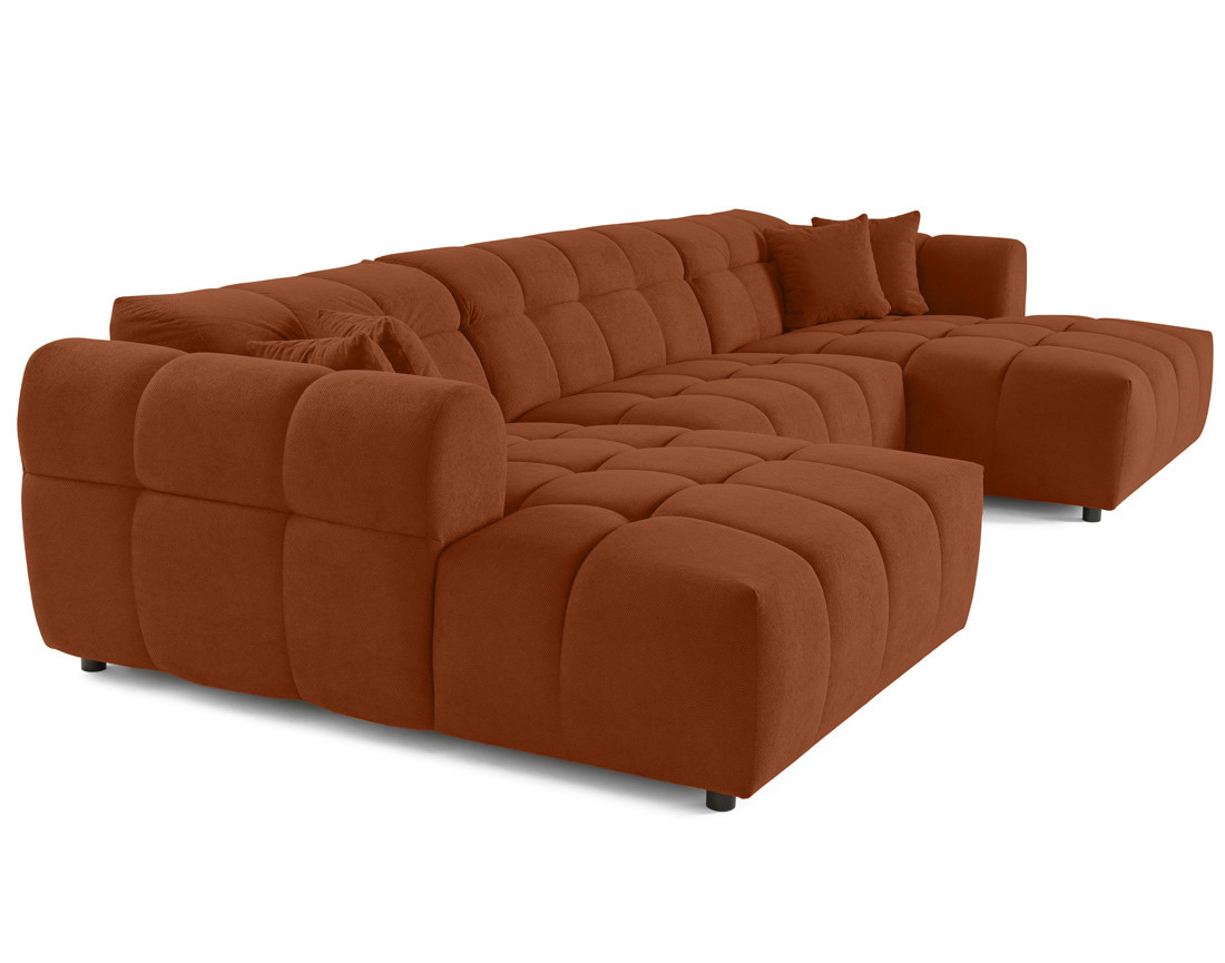 Le Ray - canapé panoramique en U 7 places en tissu texturé est l’incarnation du confort et du style. Sa assise généreusement rebondie est spécialement conçue pour offrir un confort optimal et durable, vous permettant de profiter de moments de détente prolongés. L’assise bombée, douce comme un nuage, vous enveloppe agréablement, apportant une sensation de légèreté à chaque utilisation. Le dossier incurvé, quant à lui, assure un soutien parfait et une posture idéale, transformant votre salon en un véritable espace de relaxation.