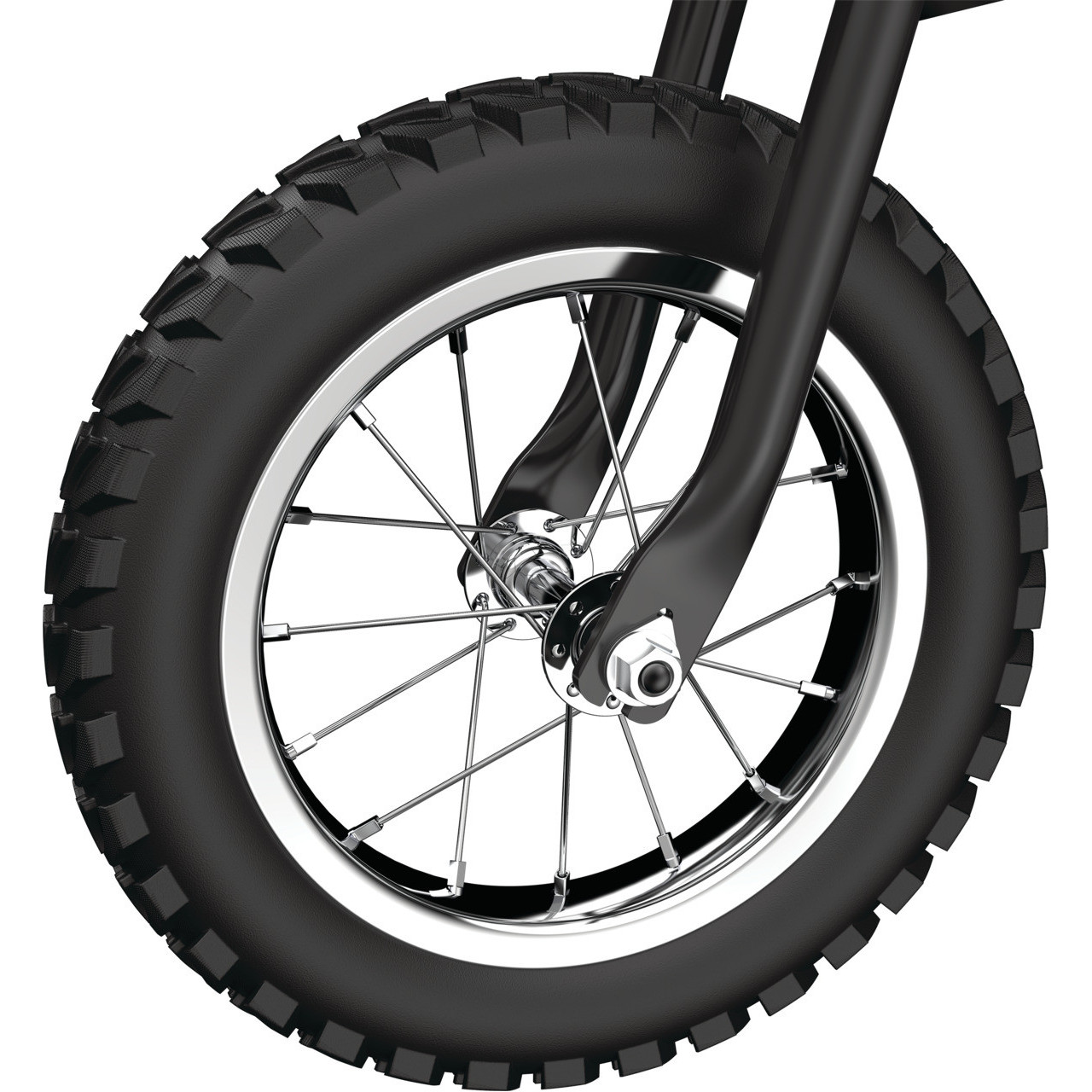Partez à l aventure avec la MX125 Dirt Rocket offrant le plaisir de l'adrénaline de la conduite hors piste , dans une taille réduite conçue pour les pilotes de moto tout-terrain âgés de 7 ans et plus. La plus petite moto tout-terrain électrique de Razor, la MX125 contribue à l 'amusement des plus jeunes. Aide les jeunes pilotes à prendre confiance en eux sur la terre, en offrant des performances de premier ordre grâce à la géométrie authentique du cadre MX. Des pneus à crampons de style motocross et un accélérateur à poignée tournante pour une conduite de moto tout-terrain plus vraie que nature. La propulsion arrière permet un meilleur contrôle du poids et de l'équilibre pour une sécurité et une stabilité accrues, tandis que le moteur électrique à entraînement par chaîne et à couple élevé propulse les pilotes jusqu'à 13 km/h (8 mph) pendant 40 minutes d'utilisation continue. C'est l'introduction parfaite à l'excitation et à l'aventure du tout-terrain.