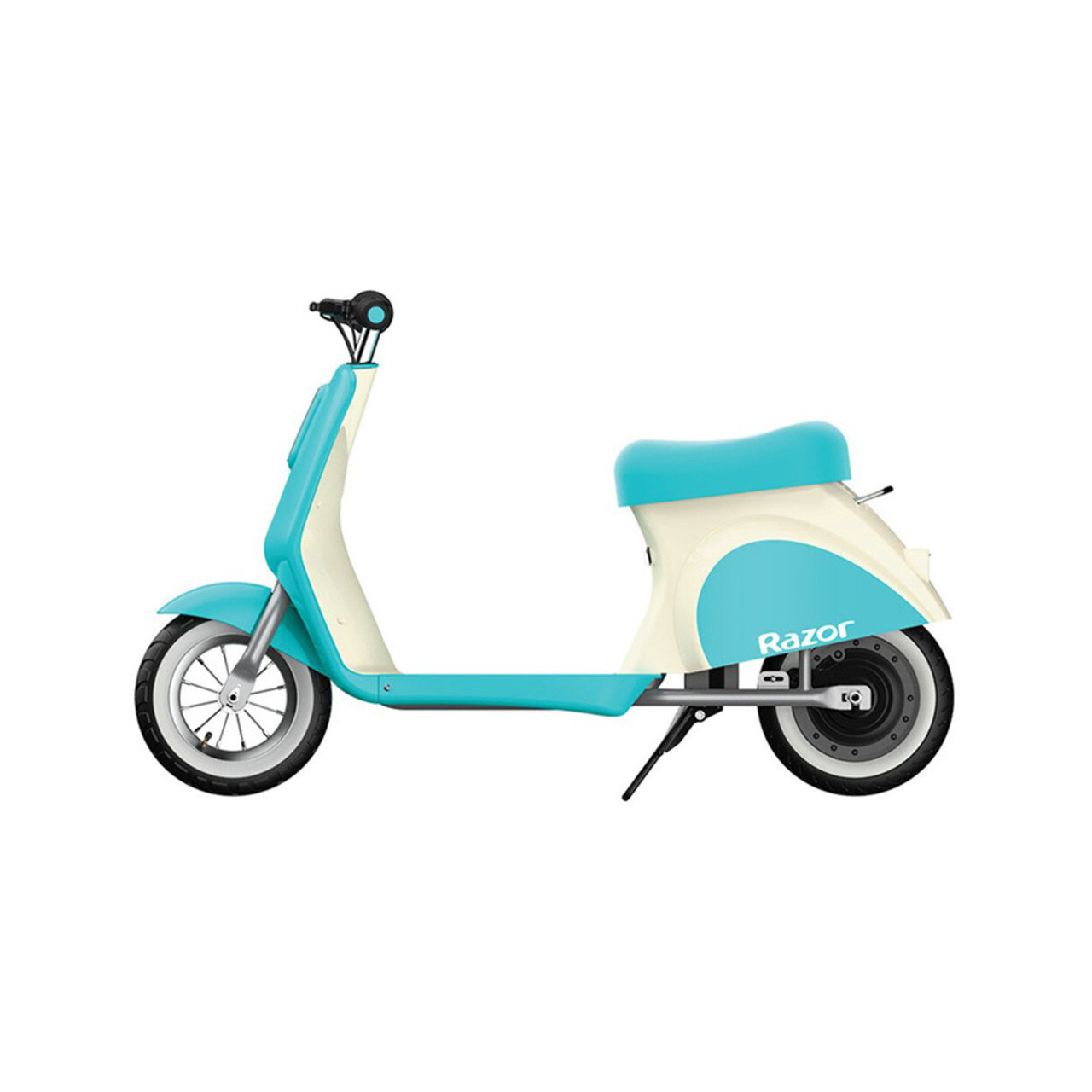 Vous aimez le style, le rétro ou le vintage, et votre histoire chromatique est aussi importante pour vous que votre algèbre. Un compartiment de rangement secret, une double béquille, des coussins d'air et un système d'échappement. Un compartiment de rangement secret, une double béquille, un siège rembourré et des commandes à portée de main Tout cela fait de ce scooter un véhicule extraordinaire. Alors, asseyez-vous, détendez-vous et profitez du bonheur. Le Pocket Mod Petite est le plus petit scooter électrique miniature Eurostyle de Razor, conçu pour les jeunes cyclistes de 7 ans et plus et est complètement 'à la mode'. Le moteur à moyeu de 100 watts Power Core de Razor offre des vitesses allant jusqu'à 13 km/h et la batterie rechargeable de 12 V offre jusqu'à 40 minutes de temps de conduite continu sur une seule charge. Avec la carrosserie bicolore couleur bonbon, les pneus blancs de 255 mm, le siège rembourré assorti, l'accélérateur à poignée tournante et le frein à main, la conduite sur ce mod de poche d'inspiration vintage est aussi douce qu'élégante.