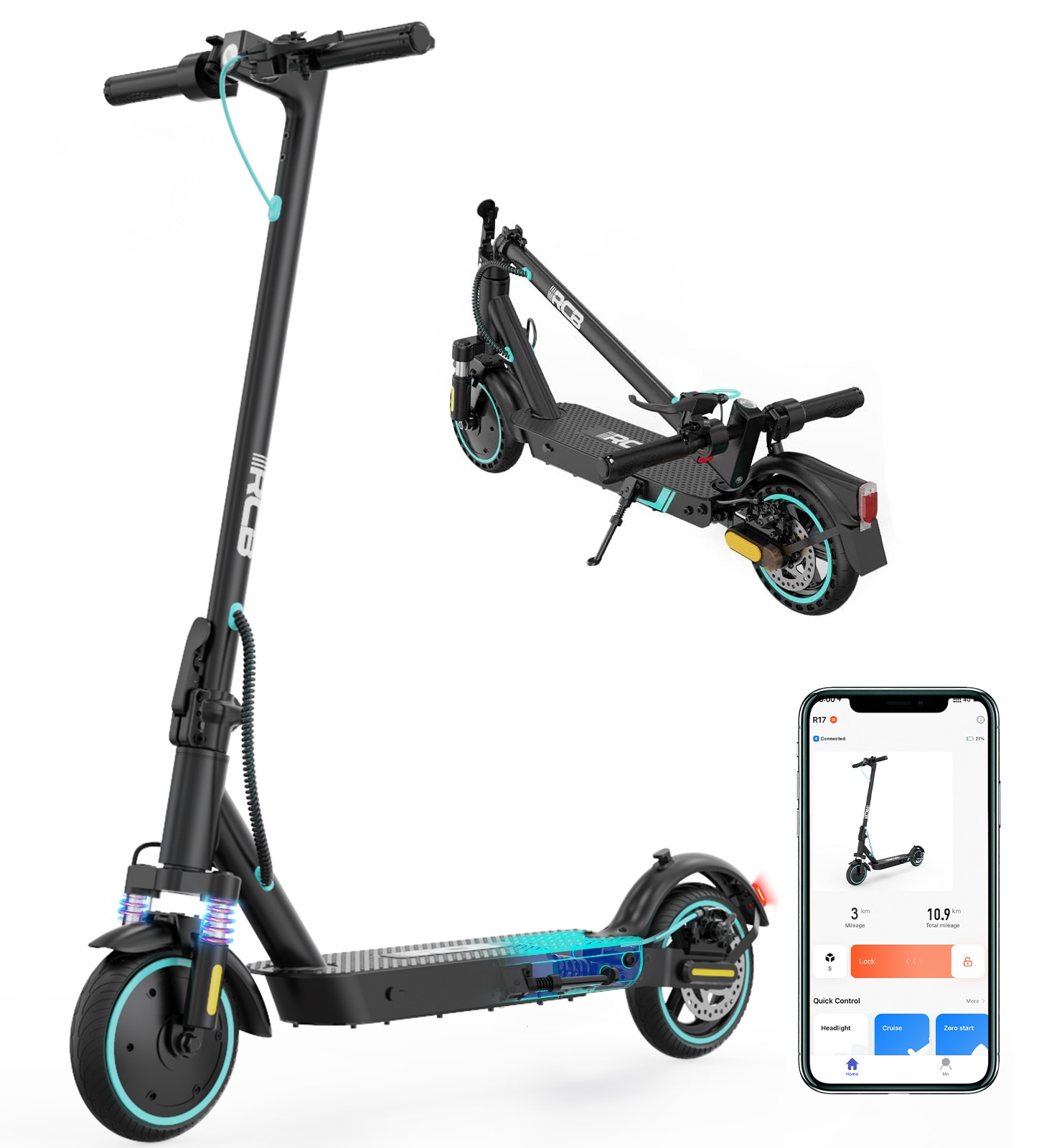 RCB R17 Trottinette Électrique - APP - Pneus Solides 8.5" - Pour les adolescents et les adultes