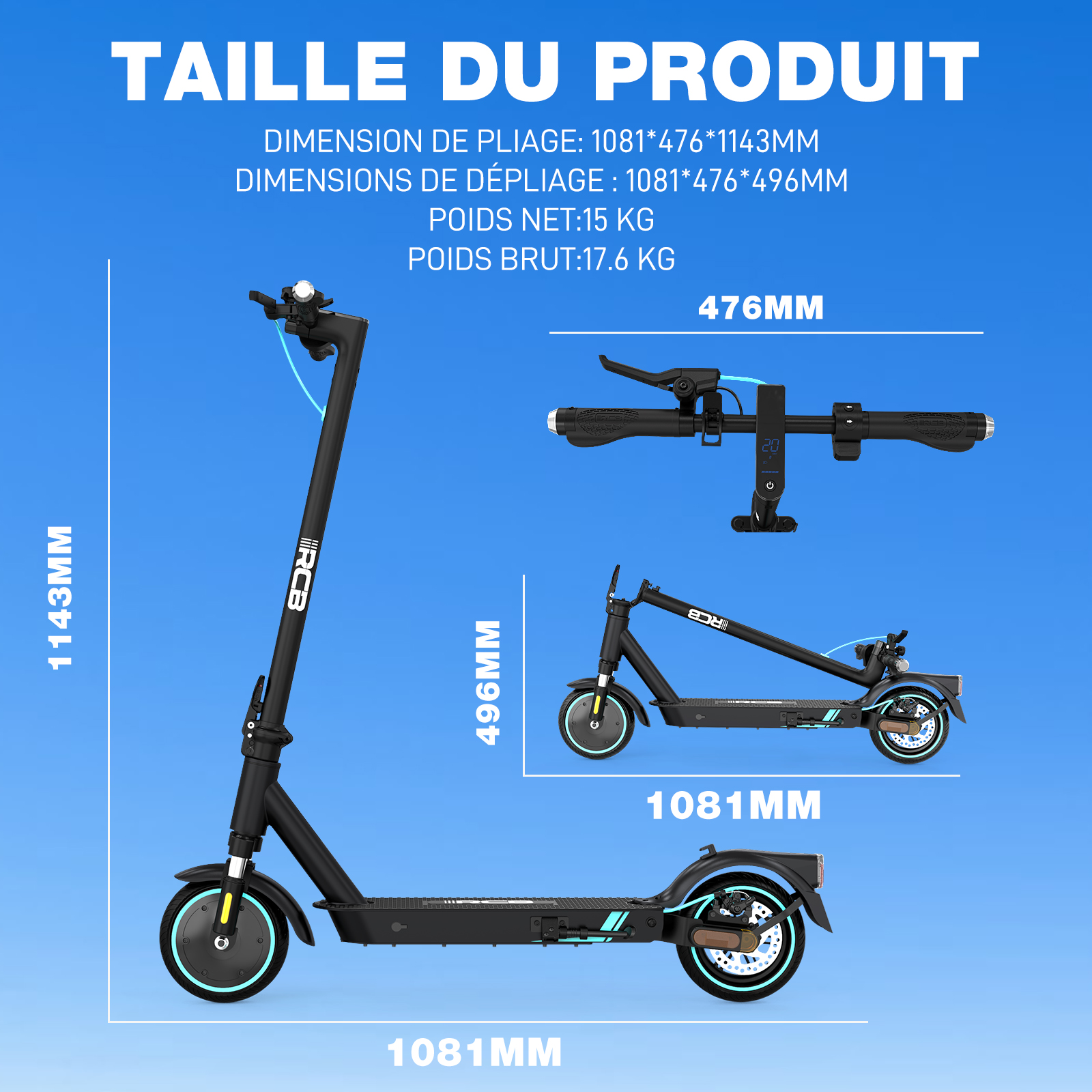 - ✔️Trottinette électrique pliant RCB 8.5 pouces