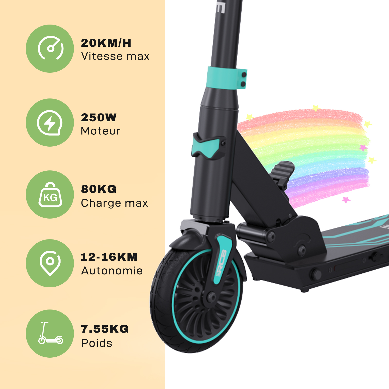 | Libellé | RCB Trottinette électrique Enfant Pliable - Scooter Electrique ultra léger - Vitesse Max 20KM/H - 250W - Cadeau super - Bleu |