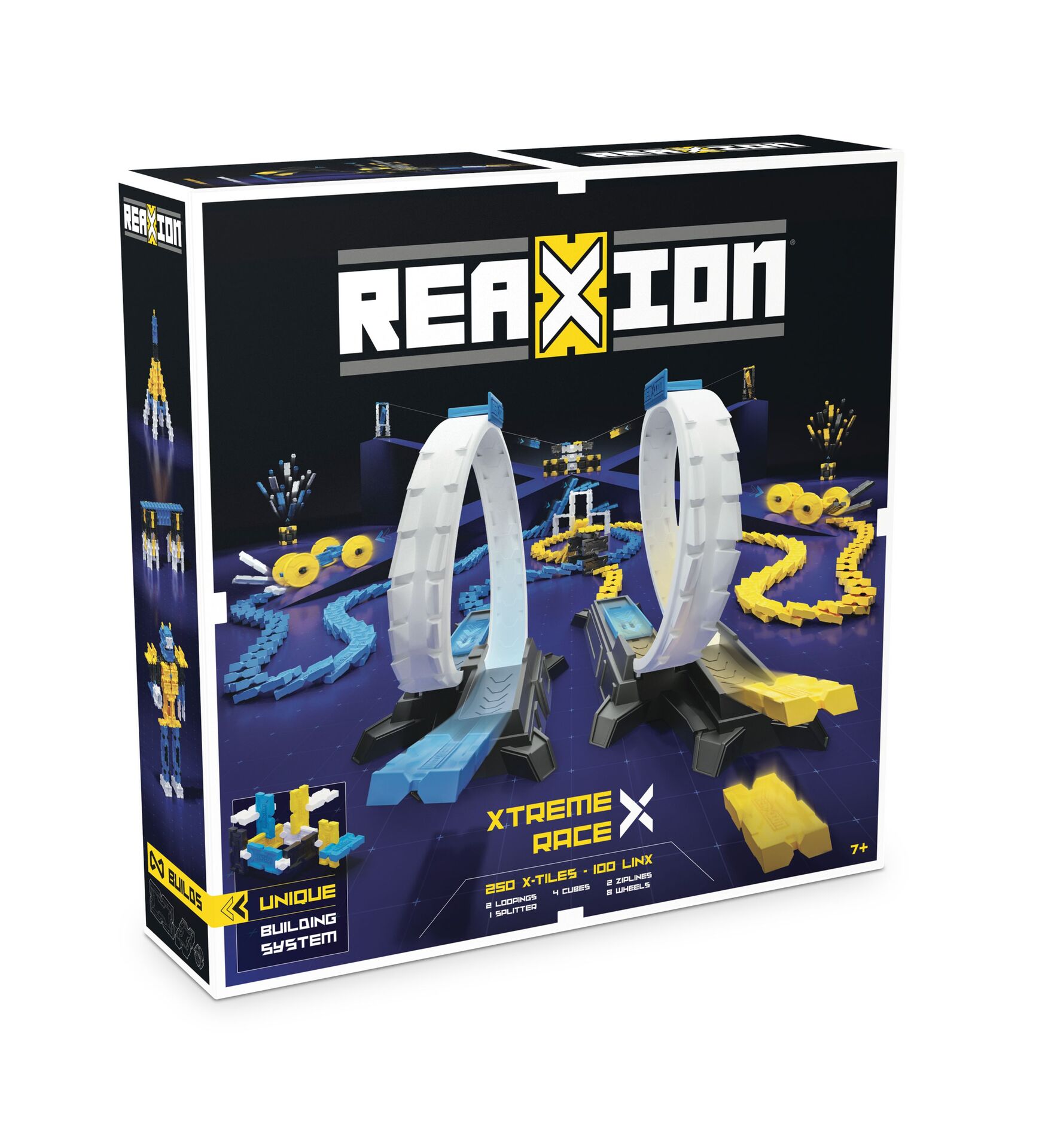 | La boîte contient | 300 Reaxion, 60 linX, 2 bases de pont 3 cubes “action”, 2 plateformes tournantes (“spinners”), 1 tyrolienne, 3 guides de construction, 3 pistes pour billes. |